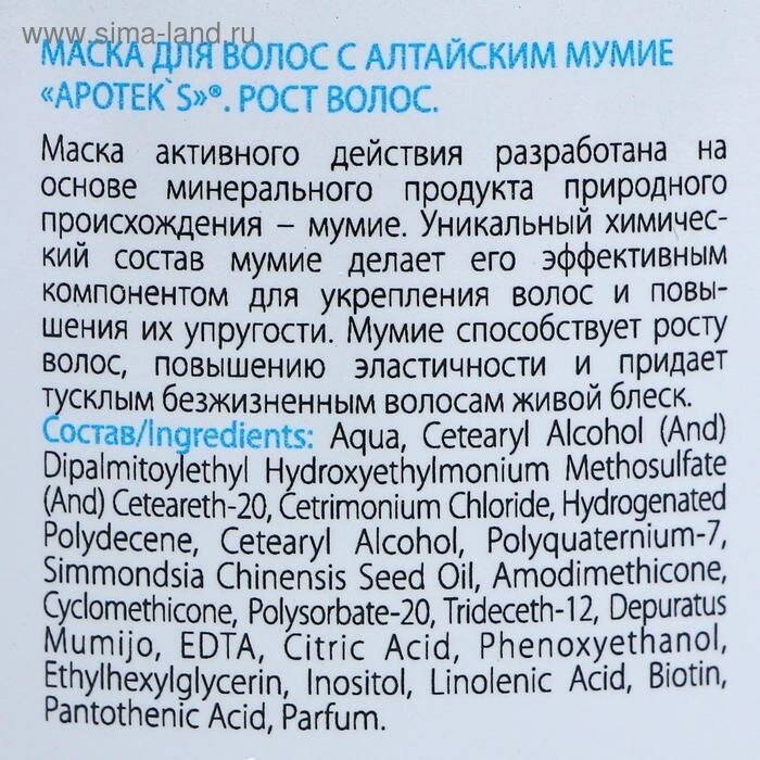 Сервис сравнения цен СкидкаГИД предлагает сравнить цены на товар «Маска для волос Apotek's с алтайским мумие 250мл МИРРОЛЛА»