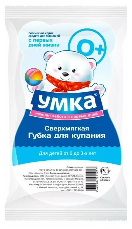 Губка для купания Умка детская Белая Мануфактура