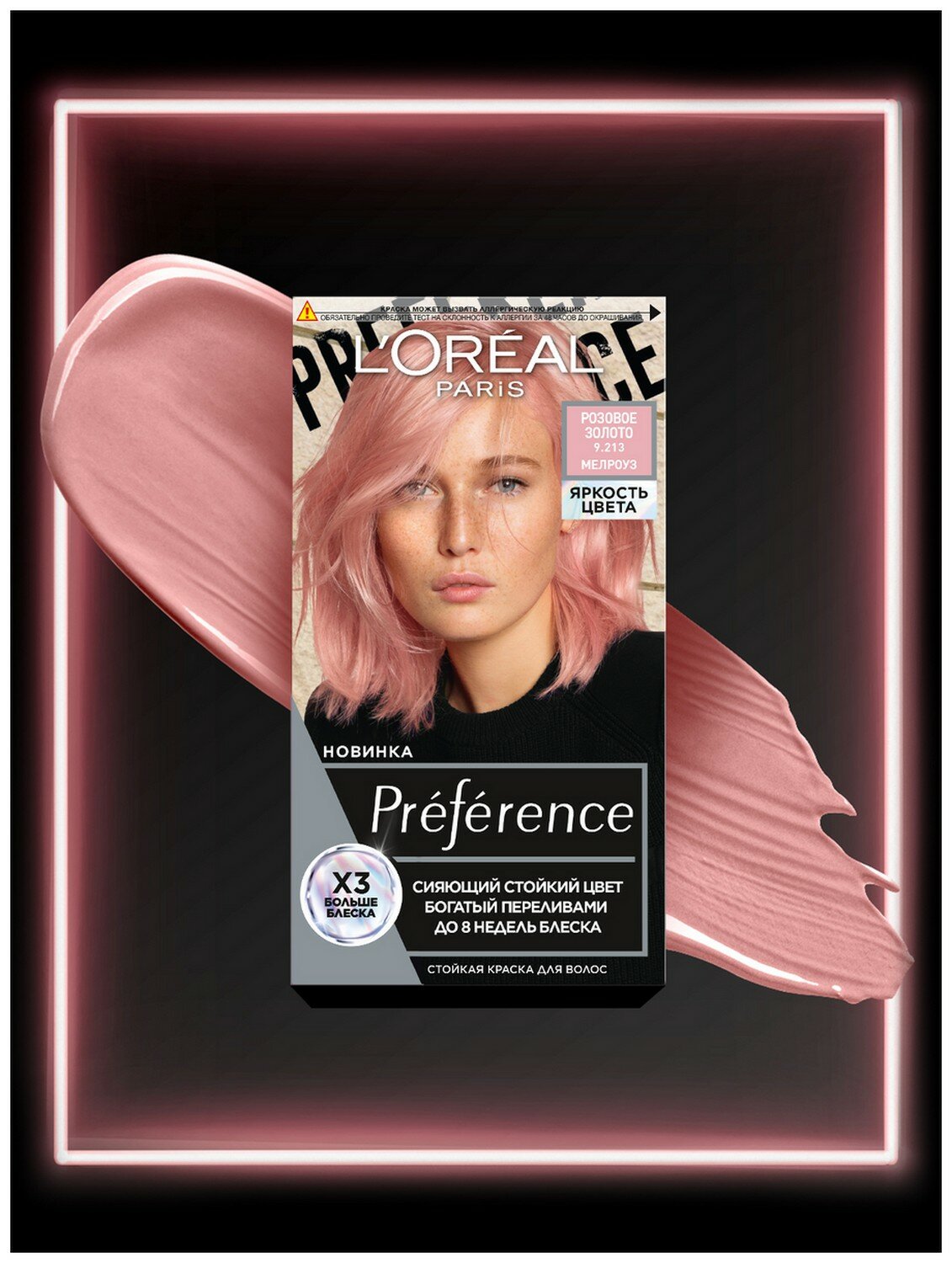 Краска для волос Loreal Paris Preference Яркость Цвета 9.213 Розовое Золото Мелроуз ЛОРЕАЛЬ