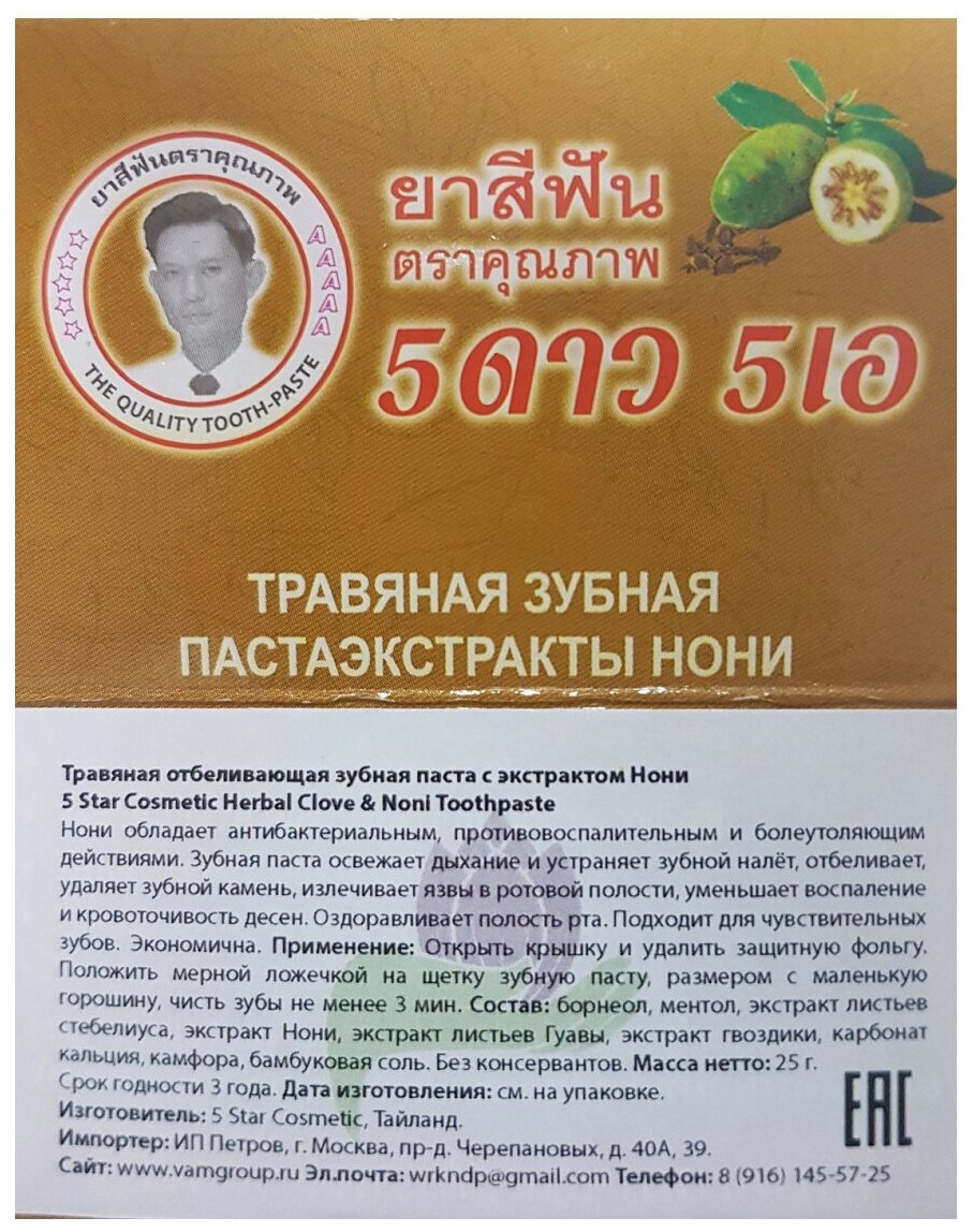 Зубная паста 5 Star Cosmetic Травяная с экстрактом Нони 5 Star Cosmetic Co LTD
