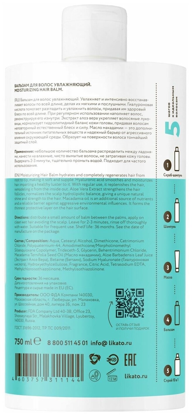 Софт-Бальзам для волос Likato Aquatika Увлажнение 750мл ФДА Компани