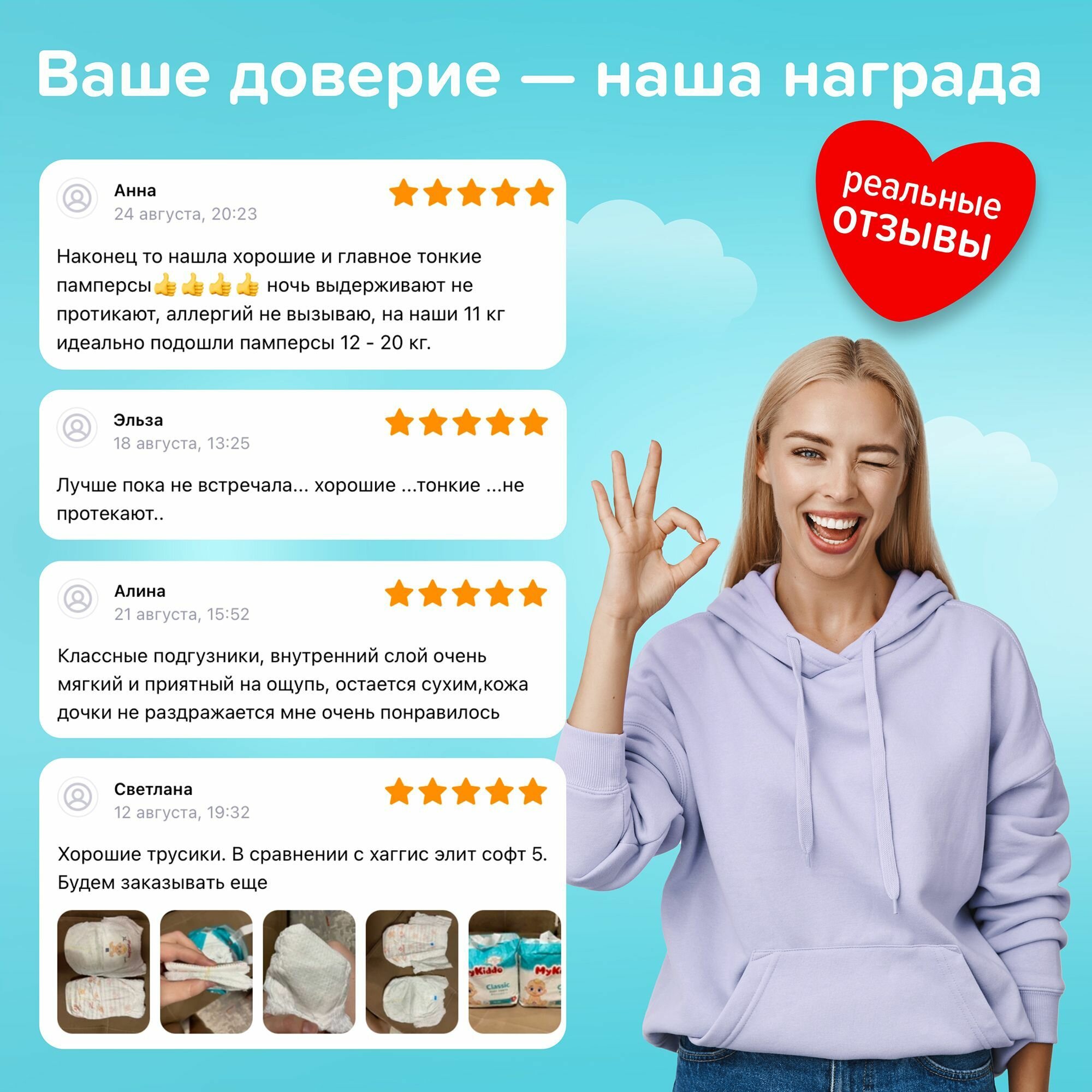 Детские трусики подгузники для новорожденных позволят сохранить чистоту и комфорт в любой ситуации. Дышащие японские подгузники 0 для новорожденных подходят с первых дней жизни ребенка, они окутывают кожу младенца, предотвращая опрелости и раздражения. Выбирая детские товары для новорожденных в первую очередь важно качество, именно наши премиум premium тонкие подгузники трусики для девочек и мальчиков имеют анатомическую форму, позволяют наслаждаться каждым движением и не вызывают дискомфорт. Ультратонкие стильные одноразовые трусы подгузники для младенцев позволяют всю ночь спать крепким сном младенца, это идеальные ночные трусики подгузники с удобными оборками на ножках и эластичной резинкой, которая не сдавливает животик. Трусики для детей могут удерживать влагу и неприятный запах, внутренний слой не дает жидкости вытекать или соприкасаться с кожей. Широкий выбор размеров маленьких турсиков включает в себя линейку товаров для малыша до года от нескольких кг размера 2 - s, 4 – m на годик, до подгузников 5 – xl , 6 - xxl размера возраста нескольких лет. Труски производства Япония незаметны под одеждой, они стерильнее и эффективнее многоразовых аналогов, ведь после использования подгузники трусики 5 биоразлагаются. Трусв имеют специальную ленту для удобной утилизации, а индикатор влажности покажет, когда подгузникитрусики наполнили и их пора поменять. Идеальное начало приучения малышей к горшку, ведь благодаря современным элементам родители смогут отследить каждый поход ребенка в туалет. Товары для новорожденных мальчиков и девочек пригождаются днем и ночью, даже при ходьбе в подгузнике целые сутки нежная кожа младенца будет гладкой и шелковистой. Большая коробка бокс включает в себя месячный запас в количестве ___ штук, а длительный срок годности позволяет приобретать полгузники с запасом. Для вас только лучшие детские товары для новорожденных, чтобы каждый день младенца был приятным, радостным и максимально комфортным. Для заботливых родителей мы всегда создаем приятные условия низких цен, скидки, распродажи и выгодные цены по акциям. Подгузники являются одним из самых необходимых товаров для малыша, это приятное дополнение к подарку на день рождения, на выписку из роддома и просто так в помощь новоиспеченным родителям новорожденного малыша. Из нескольких штук упаковок можно составить нужный и полезный набор «мне 1 годик», и порадовать находчивостью и заботой.