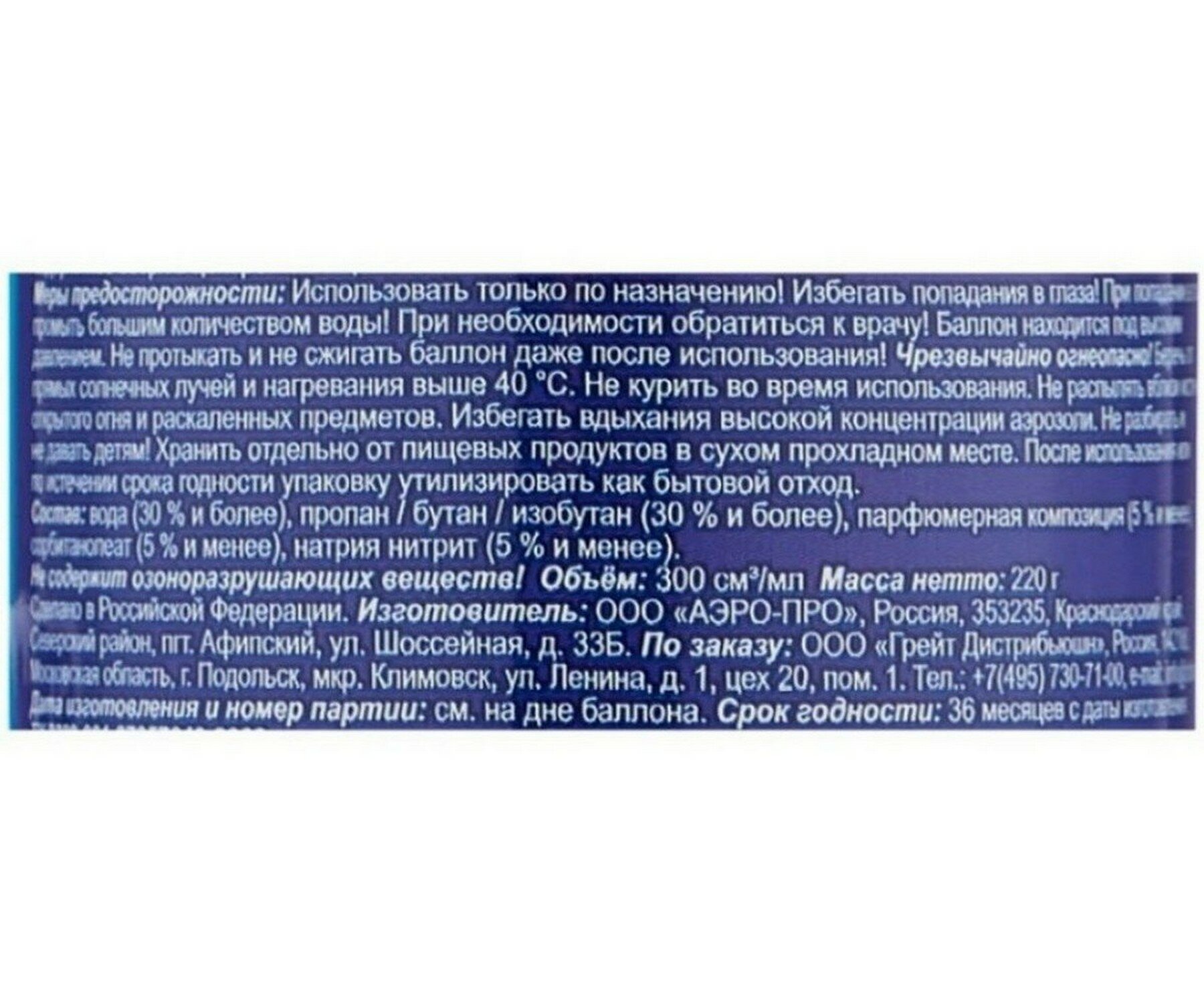 Освежитель воздуха серии «Chirton» «AQUA LIGHT» («Чиртон» «Аква Лайт») Предназначен для устранения неприятных запахов и ароматизации воздуха в жилых помещениях, в ванных и туалетных комнатах, в салонах автомобилей и т. д. Легко и эффективно освежает воздух, надолго наполняя его приятными стойкими ароматами. Не содержит газов - пропеллентов, что делает его абсолютно безопасным при применении и хранении. Способы применения. Освободить курок распылителя на флаконе освежителя от стопора. Нажав на курок несколько раз, распылить освежитель в центре помещения в воздух вверх и в разные стороны. Внимание! При распылении следует избегать попадания освежителя на стены и на предметы интерьера. Меры предосторожности. Освежитель воздуха серии «Chirton» «AQUA LIGHT» («Чиртон» «Аква Лайт») Предназначен для устранения неприятных запахов и ароматизации воздуха в жилых помещениях, в ванных и туалетных комнатах, в салонах автомобилей и т. д. Легко и эффективно освежает воздух, надолго наполняя его приятными стойкими ароматами. Не содержит газов - пропеллентов, что делает его абсолютно безопасным при применении и хранении. Способы применения. Освободить курок распылителя на флаконе освежителя от стопора. Нажав на курок несколько раз, распылить освежитель в центре помещения в воздух вверх и в разные стороны. Внимание! При распылении следует избегать попадания освежителя на стены и на предметы интерьера. Меры предосторожности. Использовать только по назначению! Не допускать попадания в глаза! При попадании в глаза немедленно промыть их чистой водой. При необходимости обратиться к врачу! Не глотать! Беречь от детей! Хранить отдельно от пищевых продуктов, в недоступном для детей и домашних животных месте, при температуре от +5 °С до +25 °С. Хранение под прямыми солнечными лучами и вблизи источников тепла не допускается! После использования или по истечении срока годности упаковку следует утилизировать как бытовой отход.