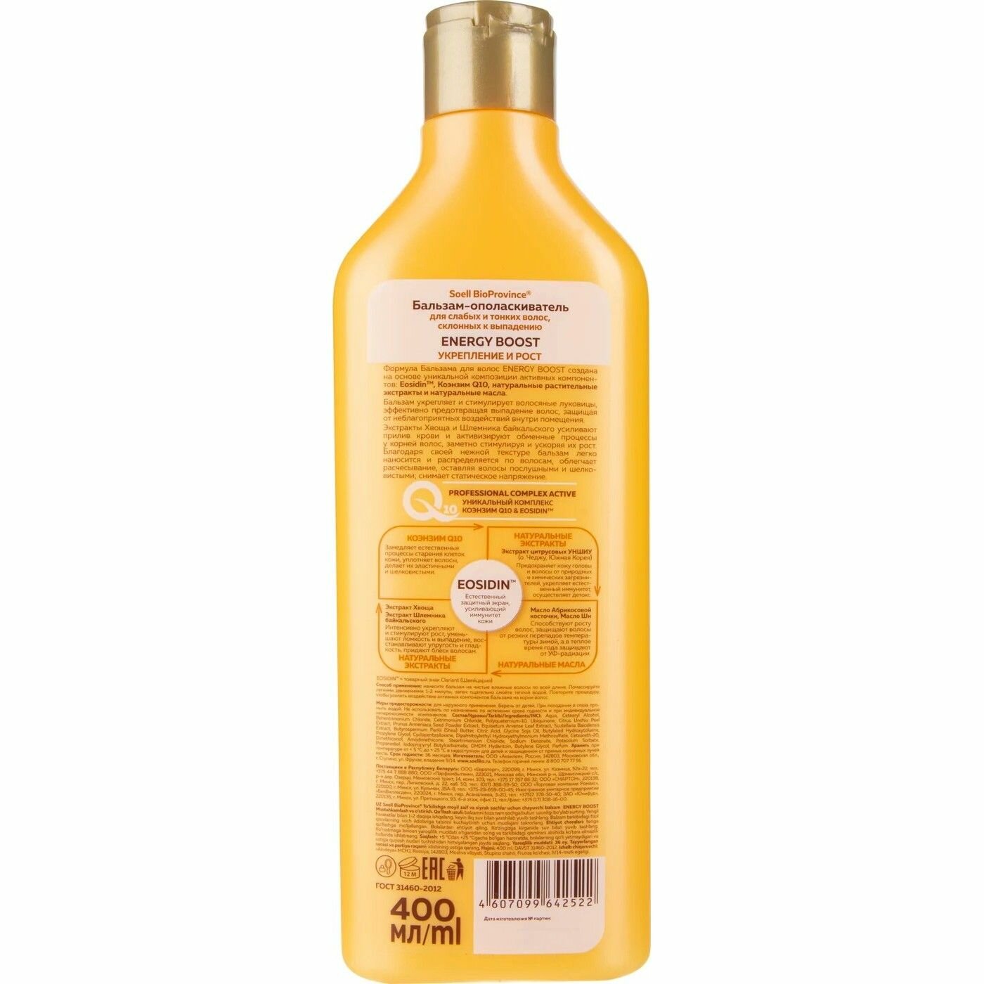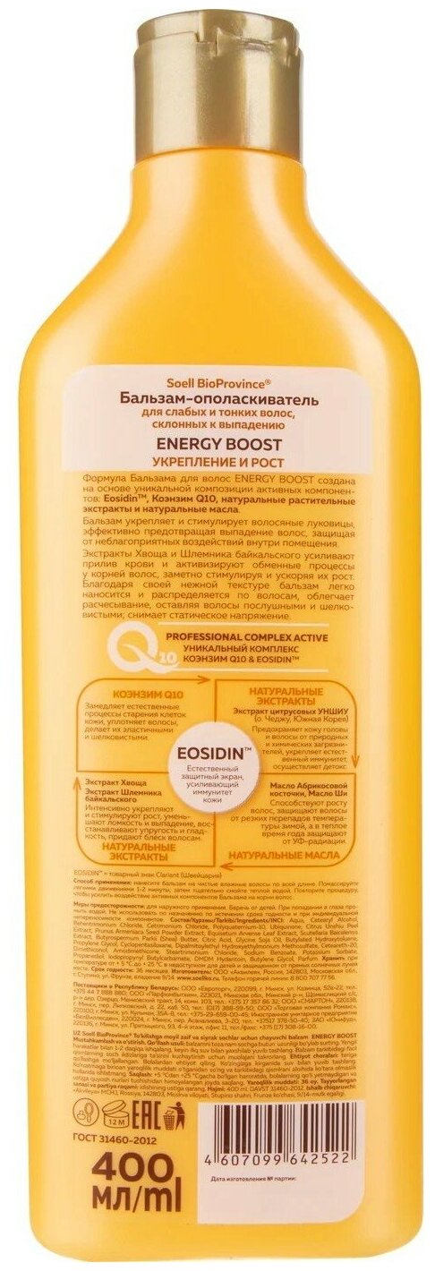 Бальзам-ополаскиватель для волос Soell BioProvince Energy Boost для слабых и тонких волос 400мл Аквилея