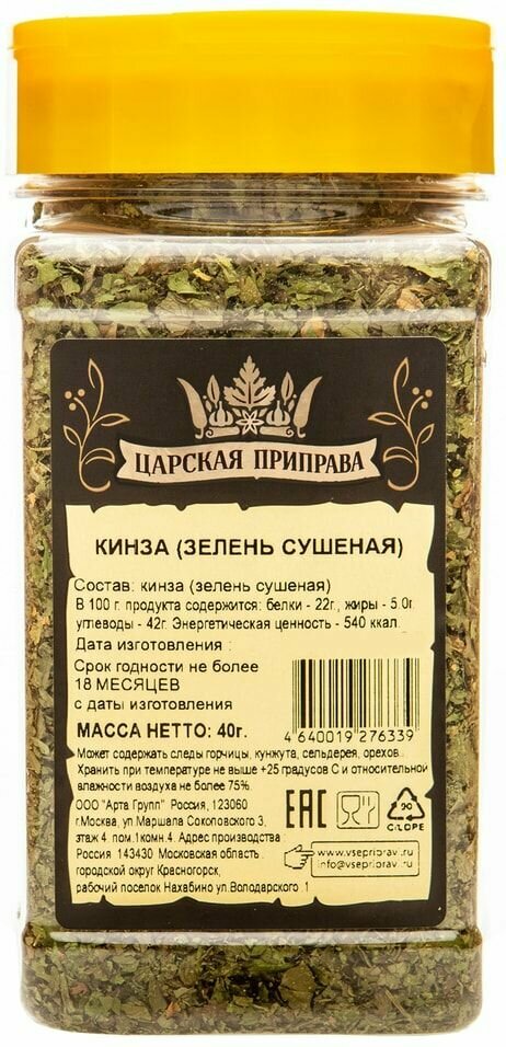 Кинза Царская приправа зелень сушеная 40г Арта Групп