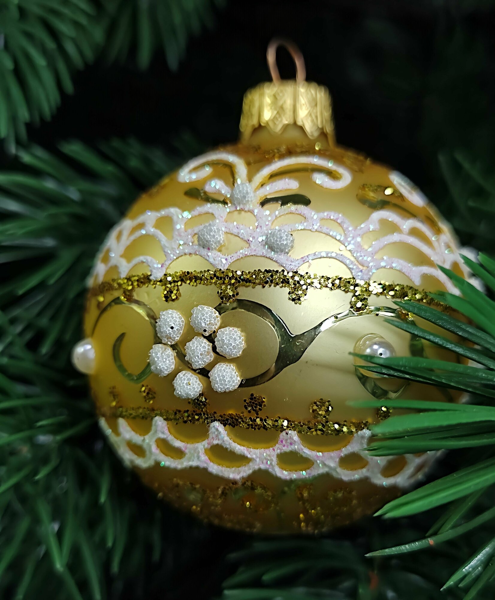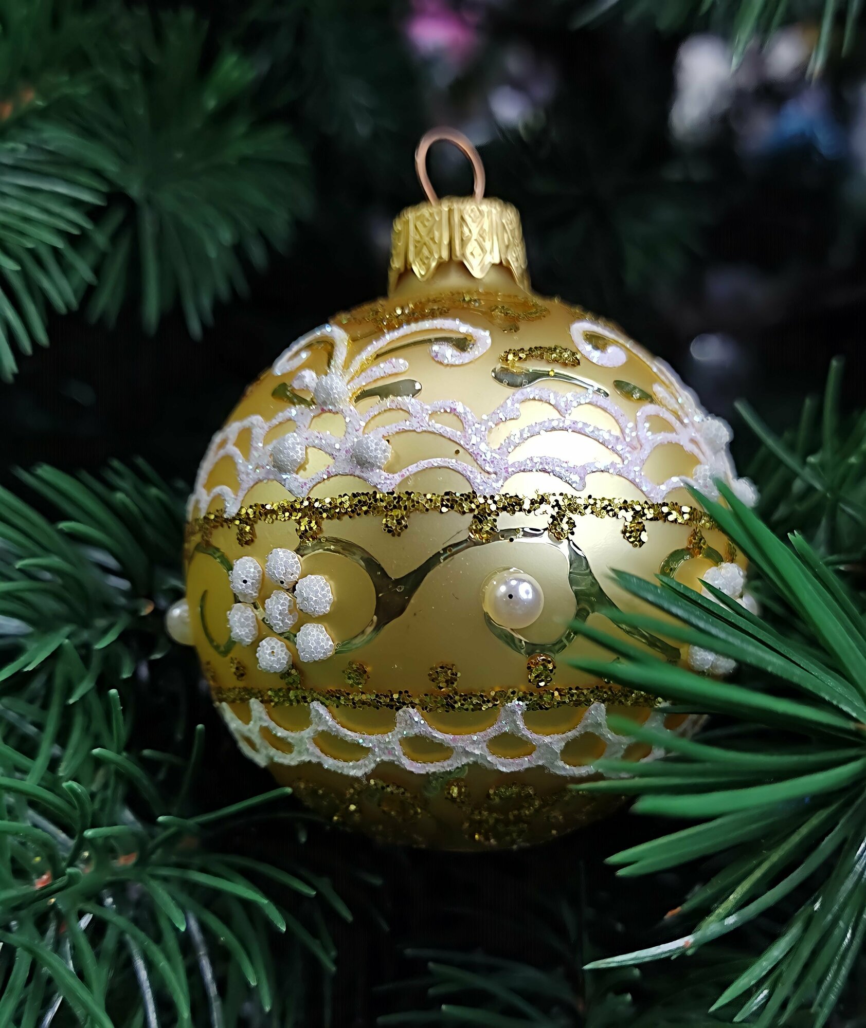 Шар елочный Коломеев Золотой узор 65мм