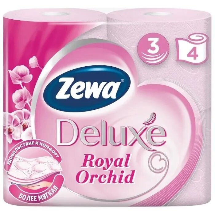 Туалетная бумага Zewa Deluxe Орхидея 4 рулона 3 слоя Эссити