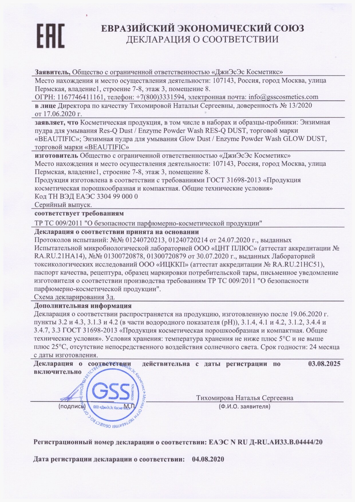 | Фирма-производитель | ООО Джиэсэс Косметикс |