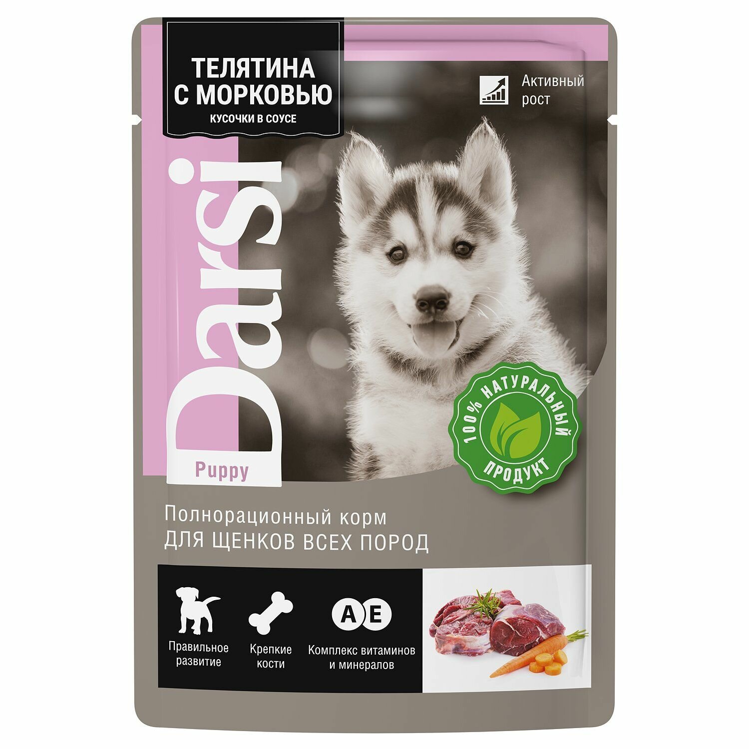 Влажный корм для щенков Darsi Телятина с морковью 85г (упаковка 32 шт.) Елецкий мясокомбинат