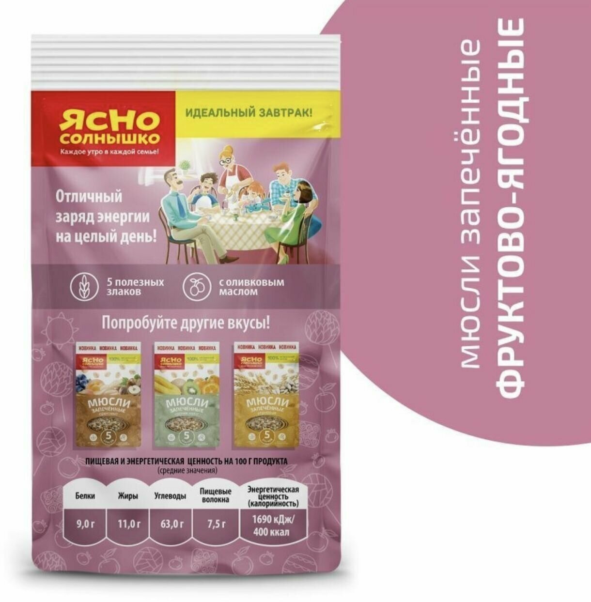 Мюсли Ясно Солнышко запеченные Фруктово-ягодные 250г Петербургский мельничный комбинат
