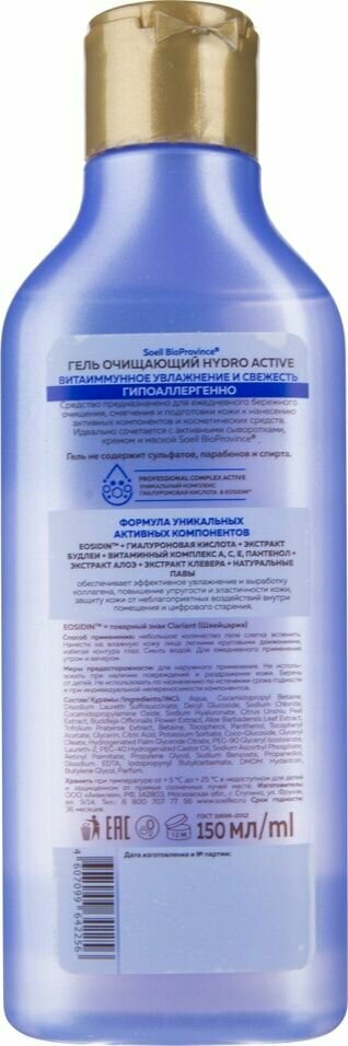 Гель для умывания Soell BioProvince Hydro Active Витаиммунное увлажнение и свежесть 150мл Аквилея