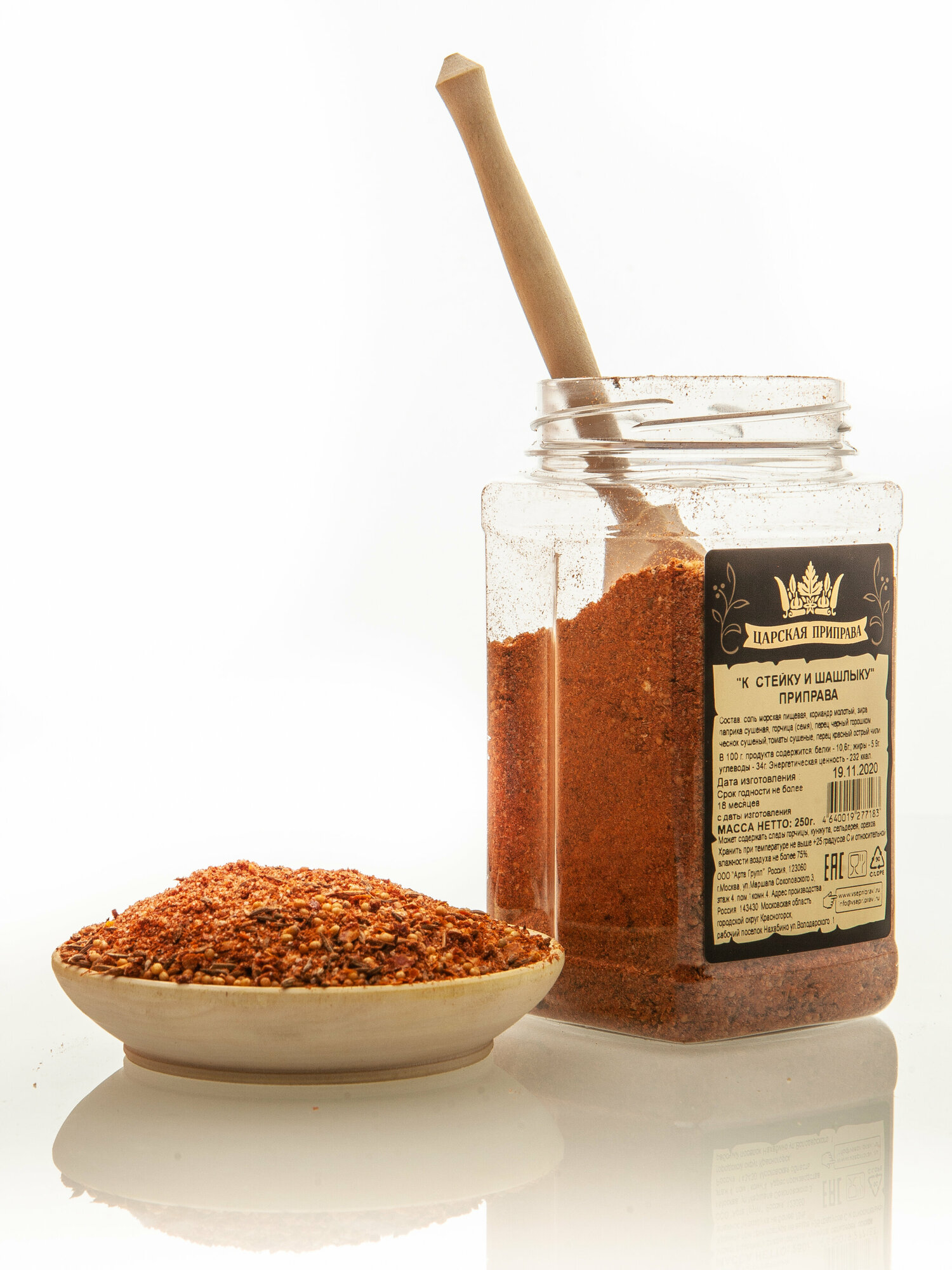 Шашлык считают блюдом кавказской кухни, и происходит его название от тюркского слова "шиш" - вертел. Таким образом, "шашлык" в буквальном смысле - это кушанье, жареное на вертеле. В состав приправы для шашлыка "Царская приправа" входят только натуральные компоненты они придадут неповторимый пряный вкус и аромат шашлыку. Используйте приправу для приготовления маринада, и как посыпку для шашлыков, гриля и мяса, приготовленного в домашних условиях: на сковороде, в духовке и в микроволновой печи.