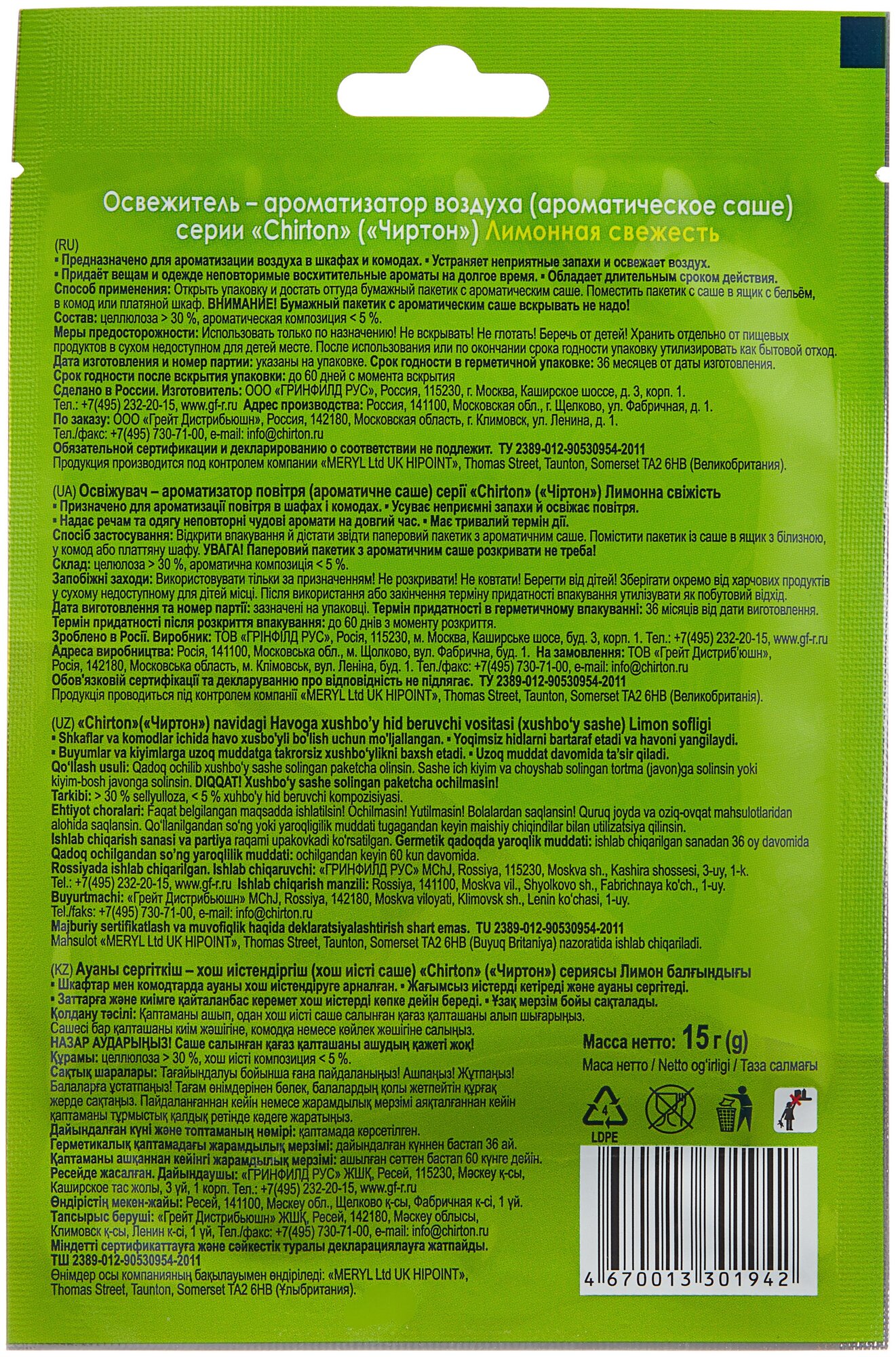 Сервис сравнения цен СкидкаГИД предлагает сравнить цены на товар «Саше ароматическое Chirton Лимонная Свежесть»