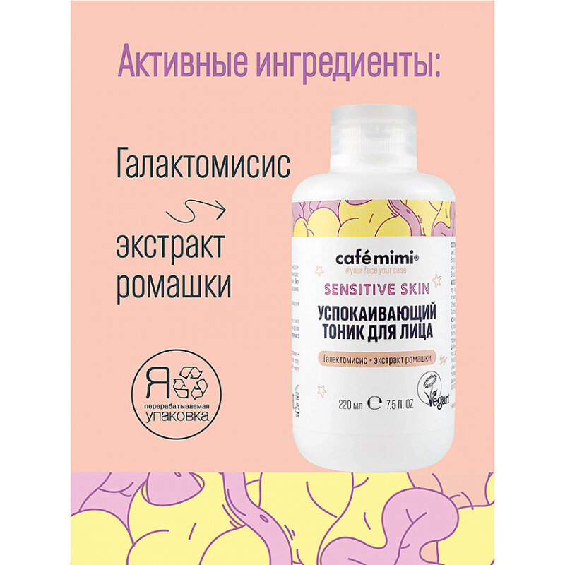 Тоник для лица Cafe Mimi Успокаивающий 220мл Дизайнсоап