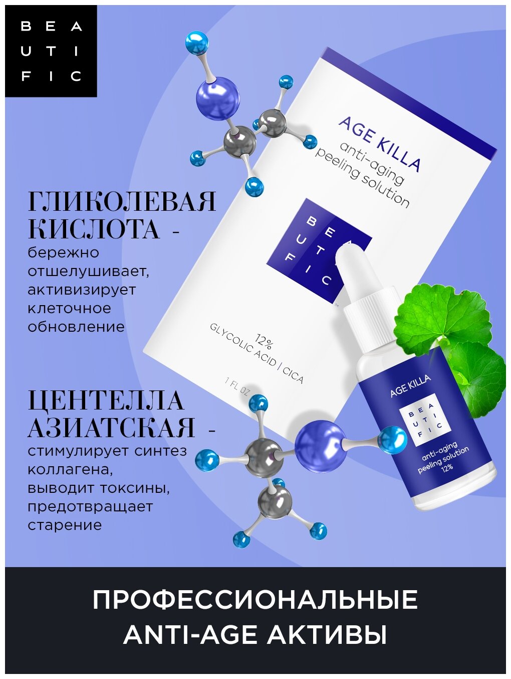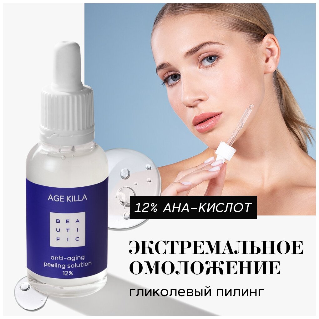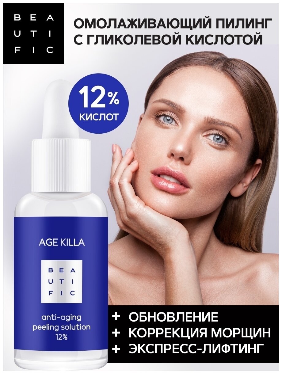 Пилинг для лица Beautific Age Killa Омолаживающий 12% с гликолевой кислотой и Центеллой Азиатской 30мл ДжиЭсЭс Косметикс