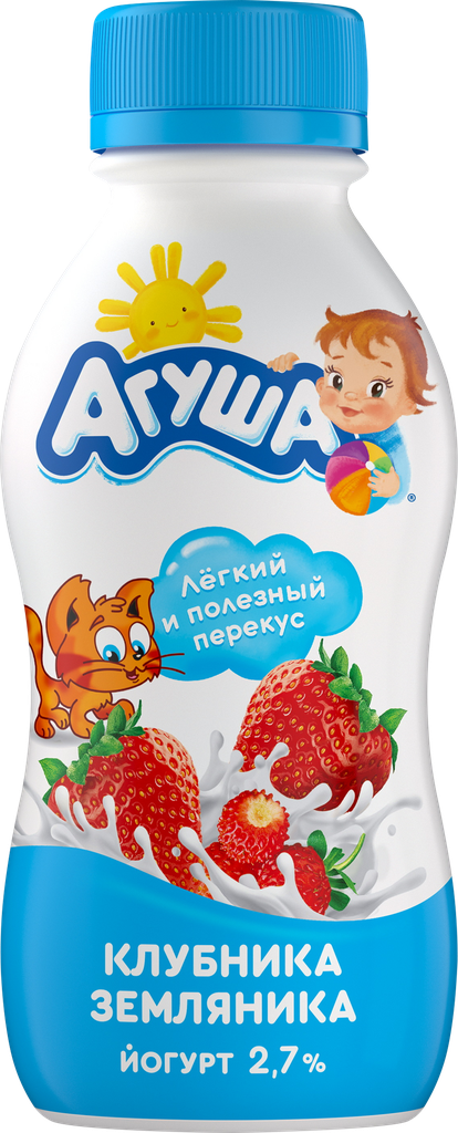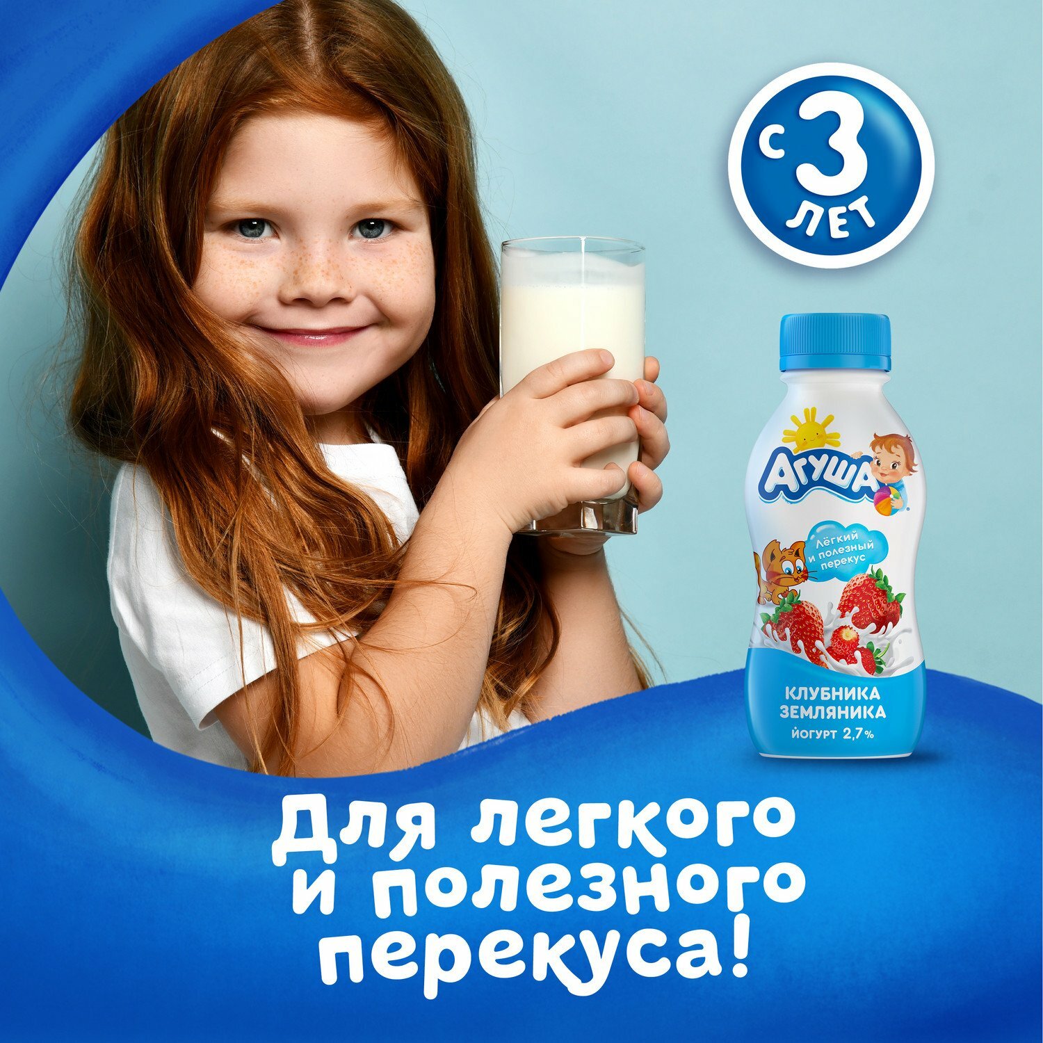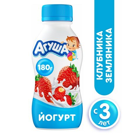 Йогурт питьевой Агуша Я САМ! Клубника-Земляника 2,7% 180 г для детского питания с 3 лет.