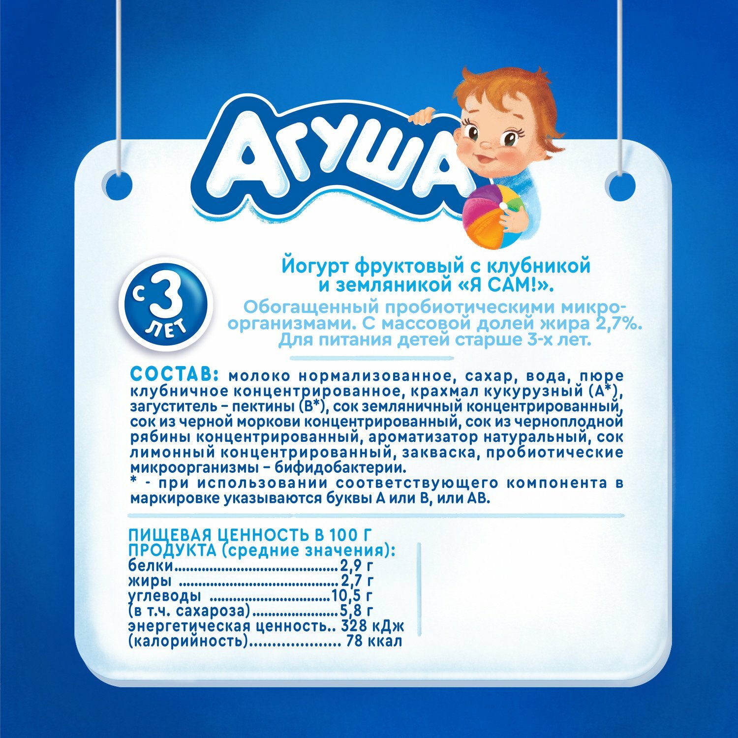 Йогурт Агуша Я сам клубника земляника обогащенный пробиотиками 2.7% с 3 лет 180г Вимм-Биль-Данн