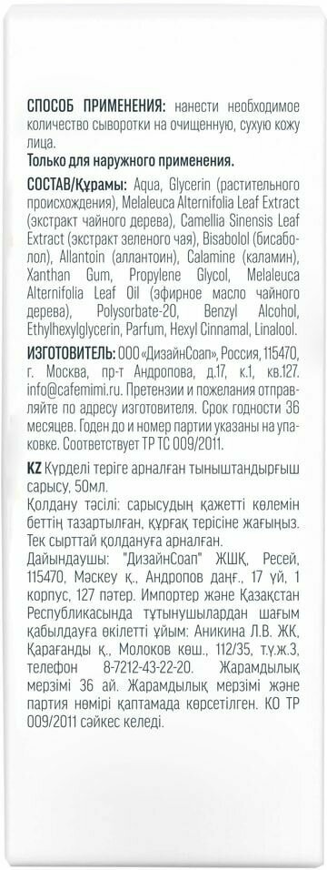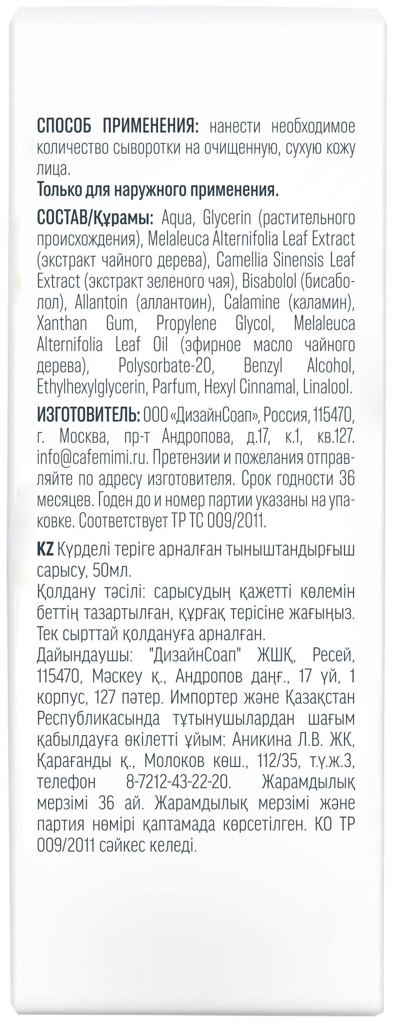 Сыворотка для лица Cafe Mimi Успокаивающая для проблемной кожи 50мл Дизайнсоап