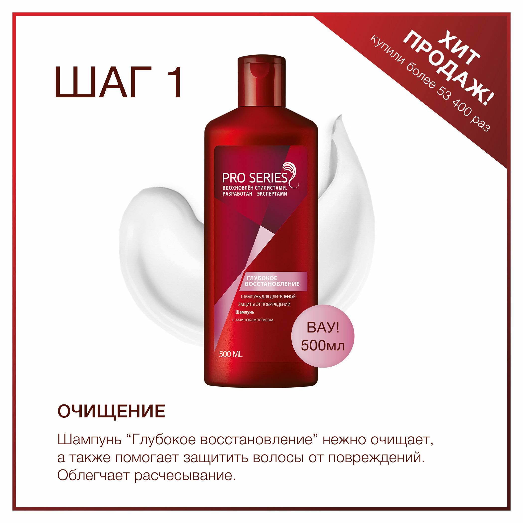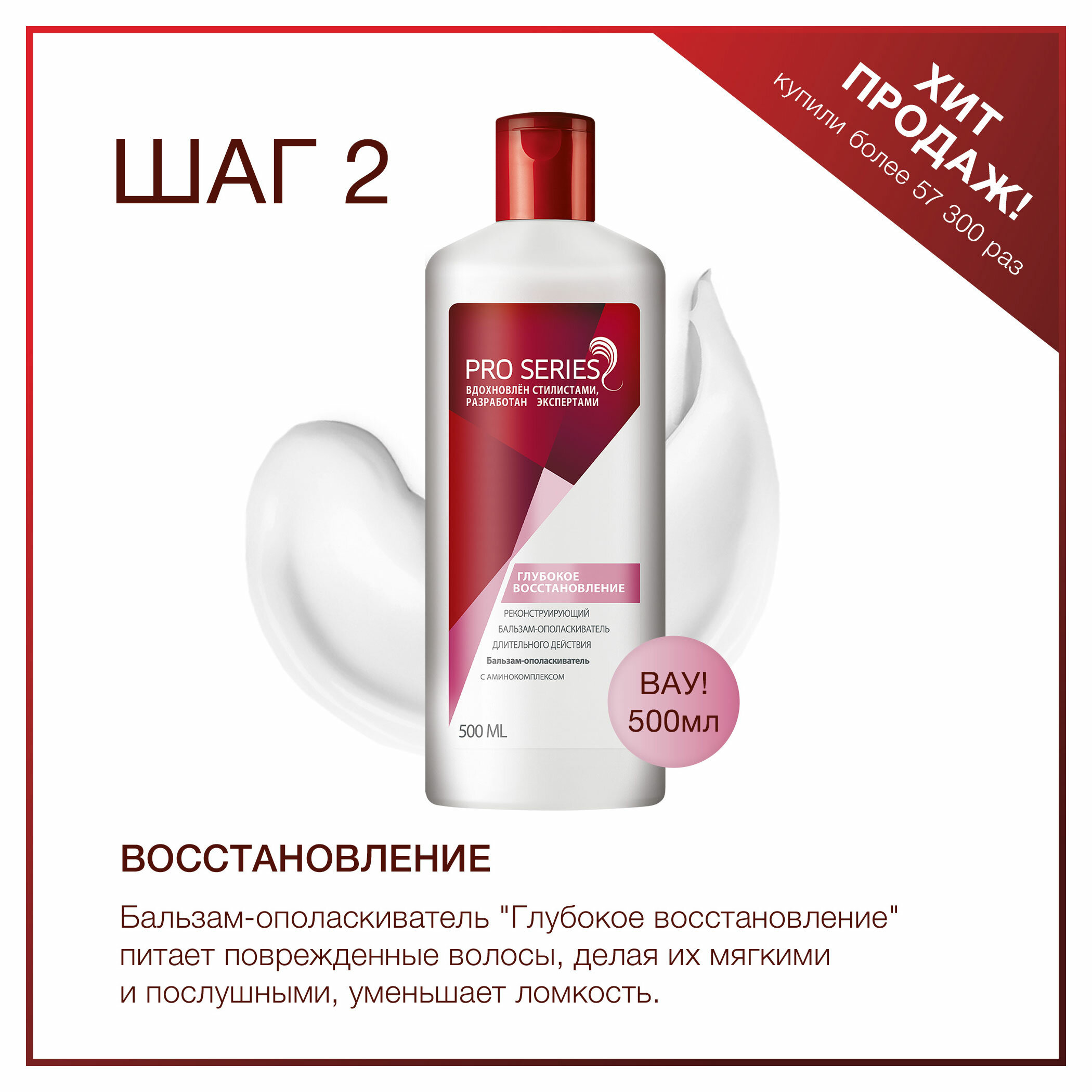 Вдохновлен стилистами, разработан экспертами! Женский набор Глубокое восстановление от Pro Series (Про Сериес) с Аминокомплексом вдохновлен салонными средствами для глубокого восстановления и реконструкции волос. Шаг 1 - Шампунь (500мл) нежно очищает, а также помогает защитить волосы от повреждений* (* восстановление гладкости). Его насыщенная формула с ухаживающими ингредиентами придает волосам силу, блеск и здоровый вид и облегчает расчесывание. Шаг 2 - Бальзам-ополаскиватель (500мл) питает поврежденные волосы, делая их мягкими и послушными, уменьшает ломкость в результате укладки. Великолепные волосы, как после посещения профессионального салона. Экспертный уход для волос от Pro Series!