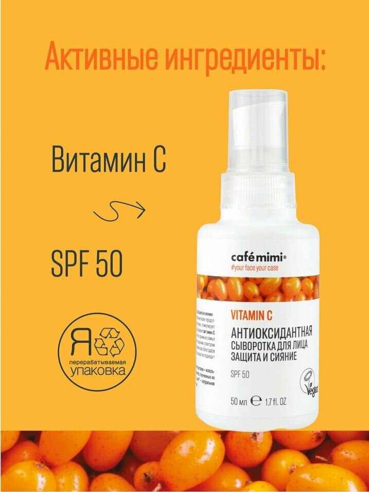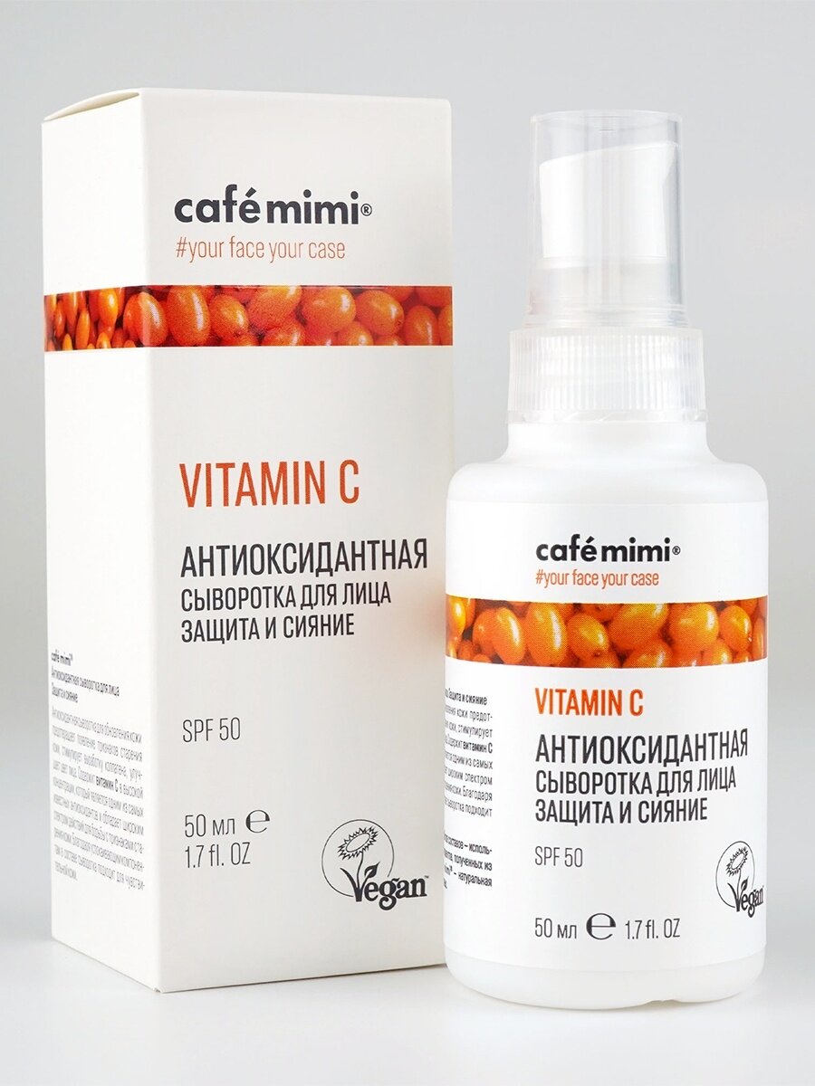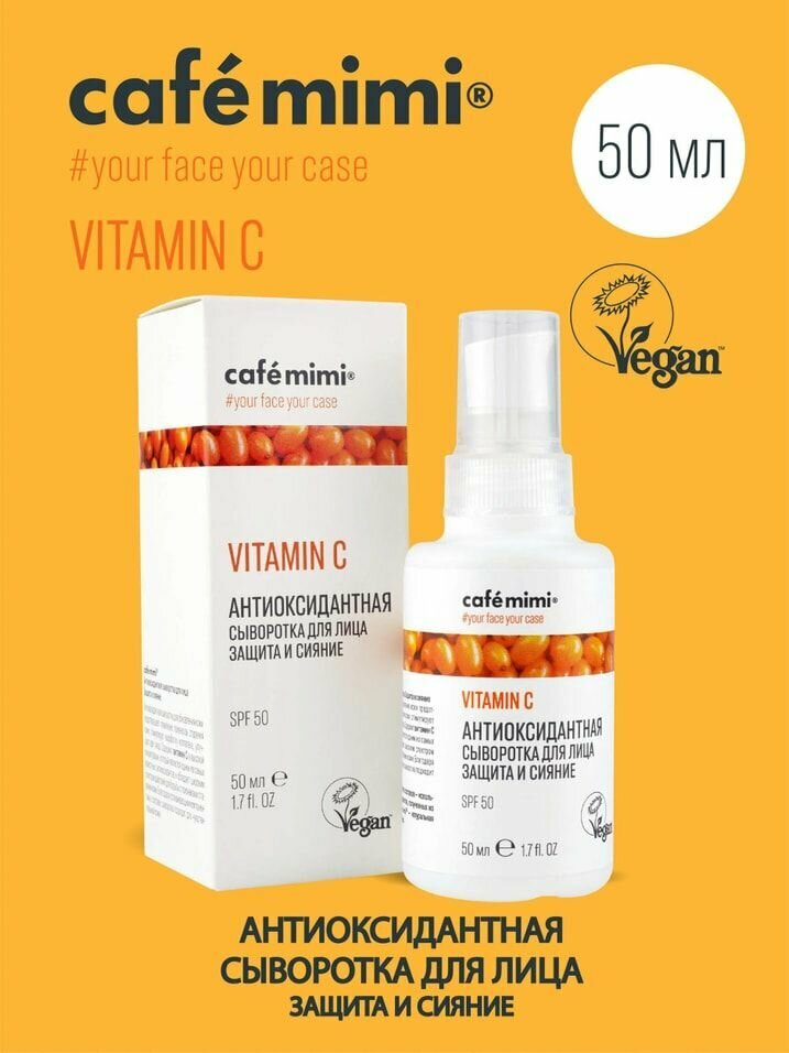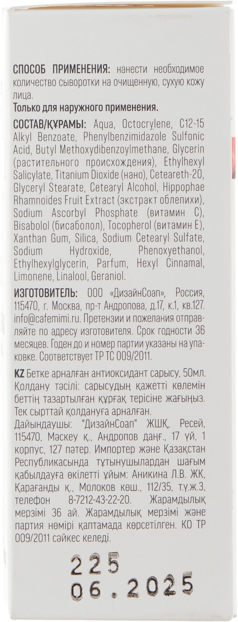 Сыворотка для лица Cafe Mimi Защита и сияние антиоксидантная 50мл Дизайнсоап