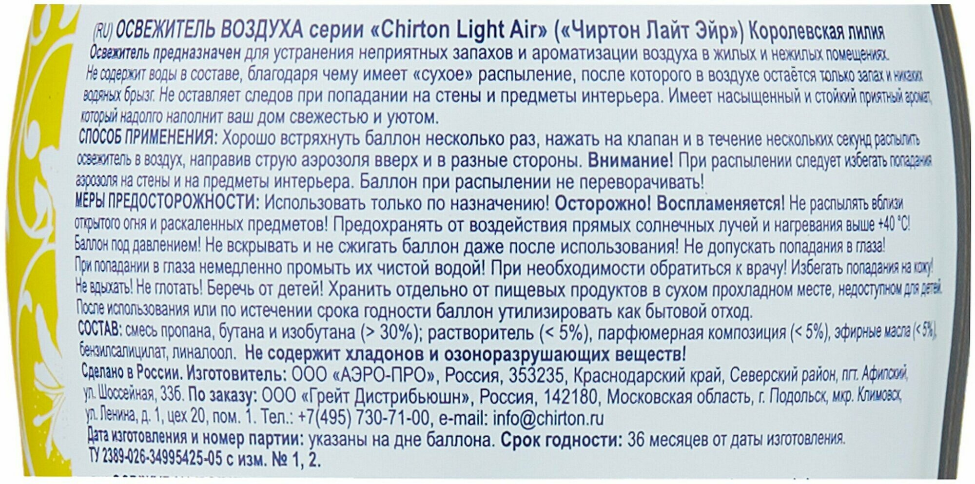Освежитель воздуха Chirton Лайт Эйр Королевская лилия