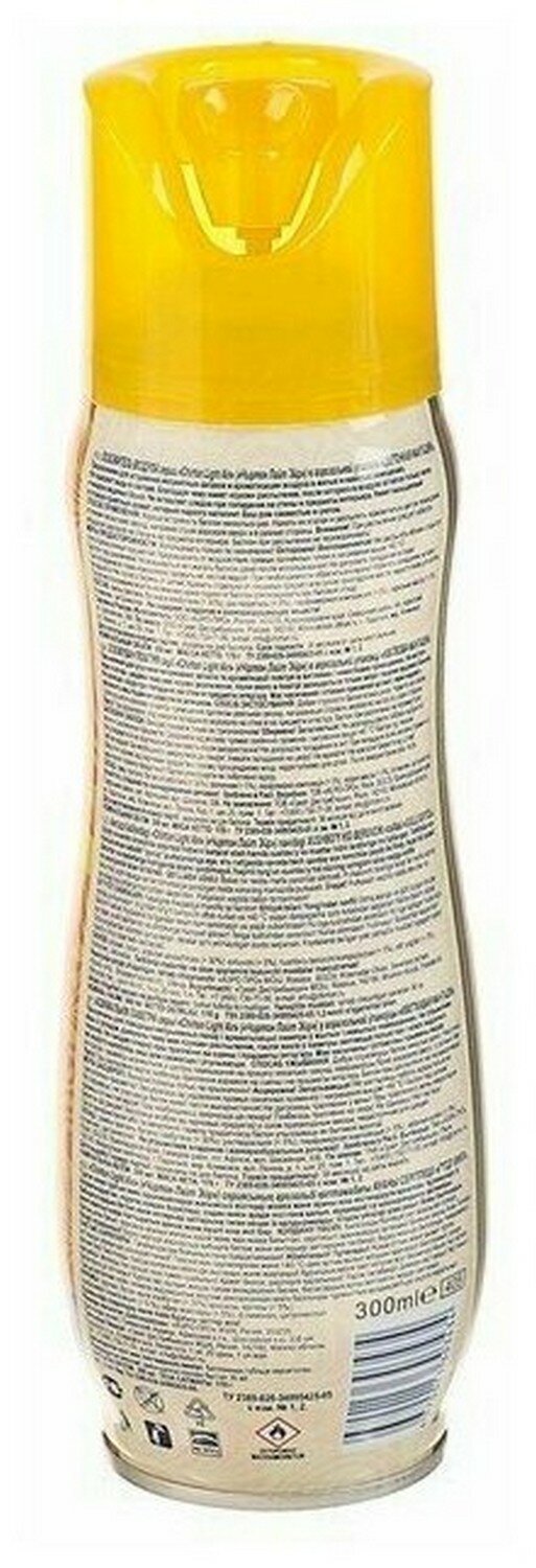 | Состав | вода (30% и более), пропан/бутан/изобутан (30% и более), парфюмерная композиция (5% и менее), сорбитанолеат (5% и менее), натрия нитрит (5% и менее) |