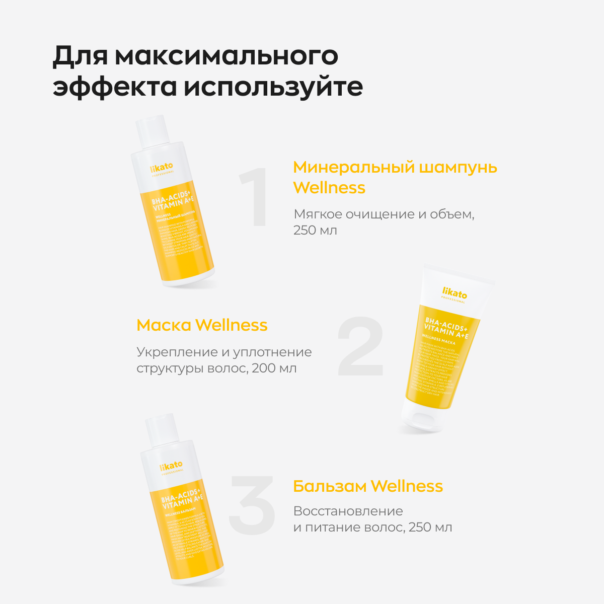 Бальзам для жирных волос WELLNESS создает дополнительный прикорневой объем. Пантенол в составе — увлажняет и смягчает, восстанавливает поврежденные пряди. Гиалуроновая кислота устраняет ломкость, защищает от воздействия окружающей среды. Экстракт календулы помогает снять раздражение кожи и уменьшить зуд. Кремовая текстура — легко наносится и распределяется.