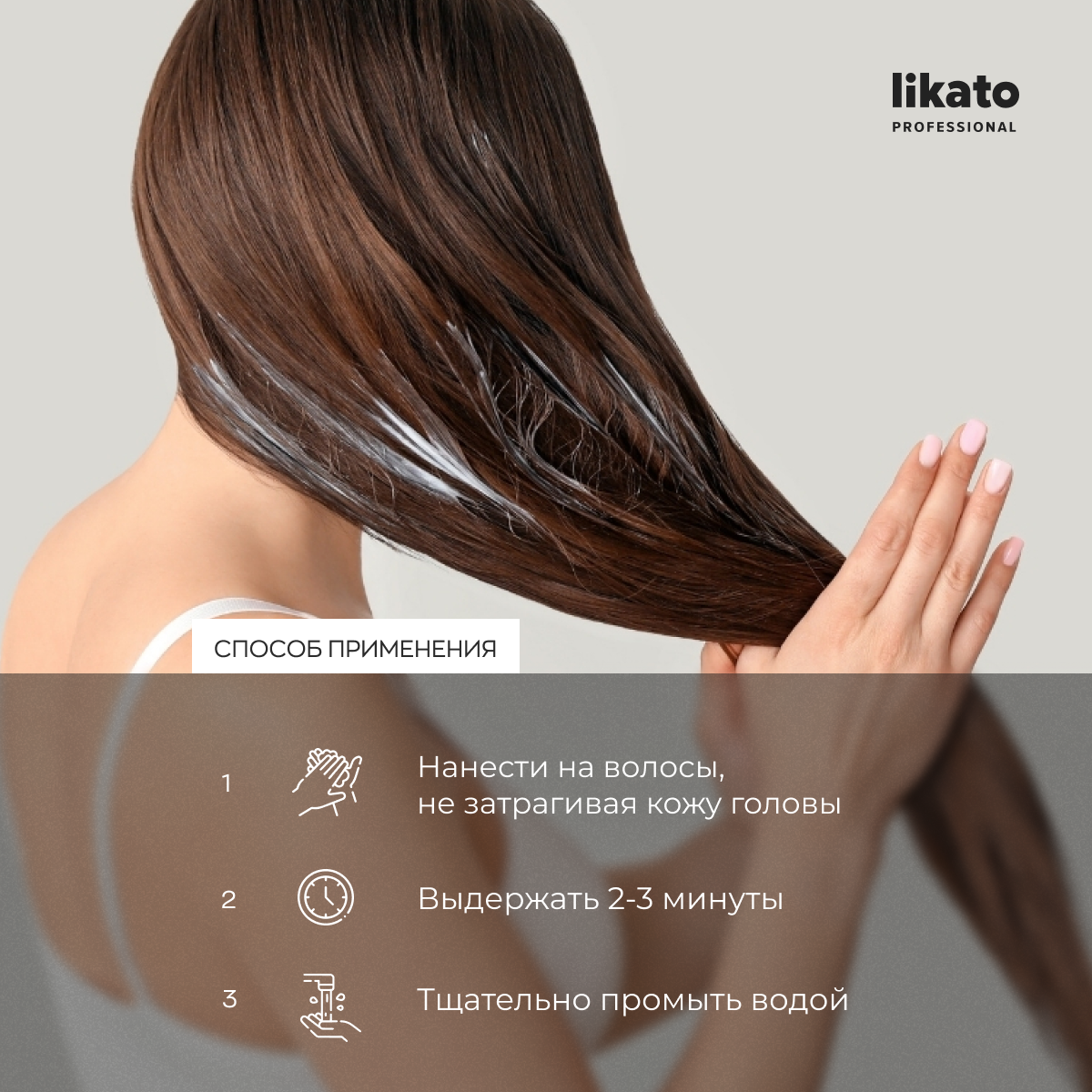 Способ применения: нанести средство на чистые влажные волосы и распределить по всей длине. Оставить на 2–5 минут. Тщательно смыть.