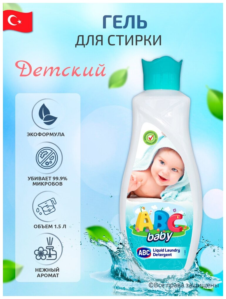 Гель для стирки ABC для детского белья 1.5л ABC Deterjan Sanayi ve Ticaret AS