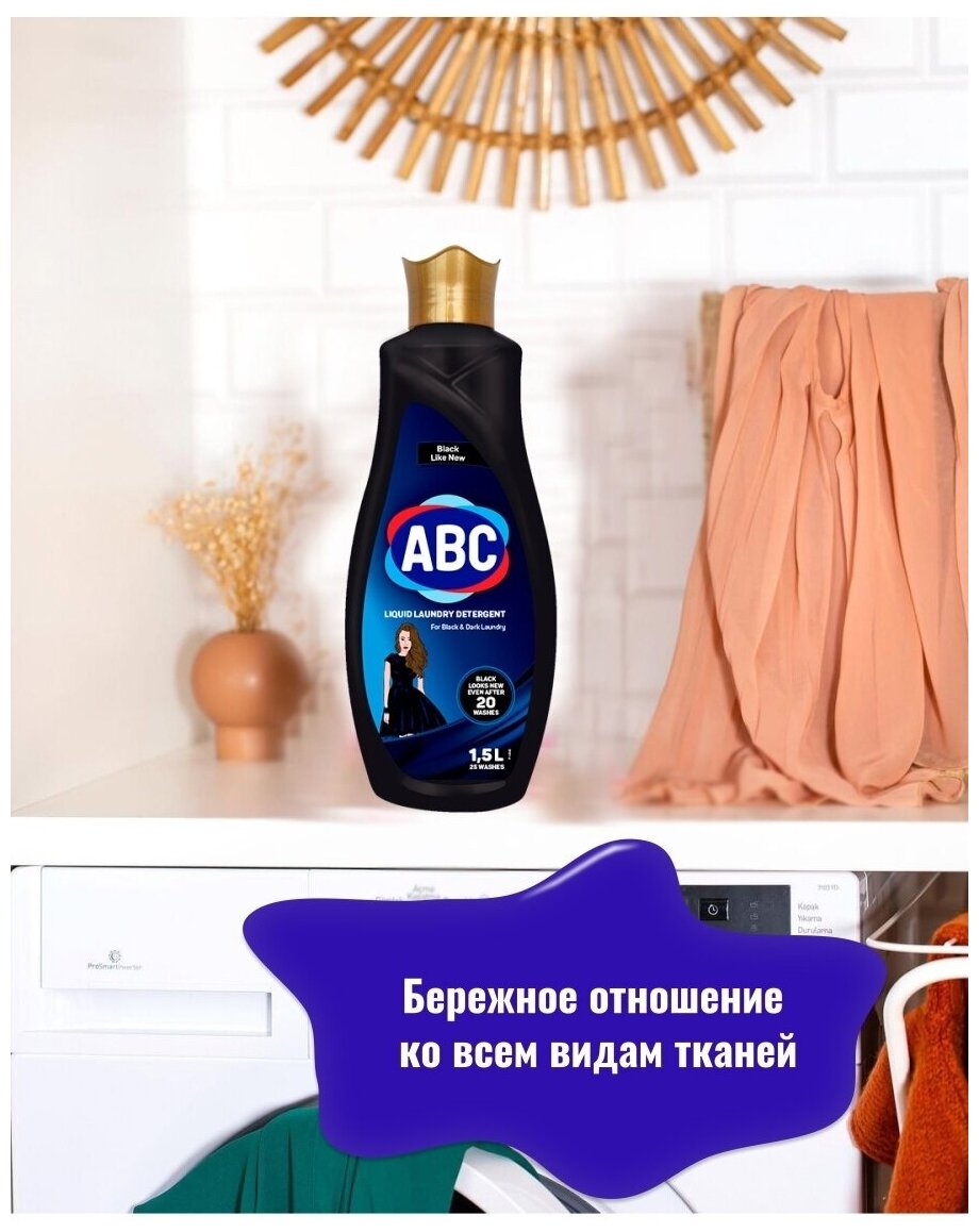 Жидкое моющее средство для стирки Цветного белья ABC для автоматической стирки. Жидкое средство удаляет стойкие пятна, в комплексе с активными компонентами усиленного действия глубоко проникают в волокна ткани и эффективно справляются со всеми видами загрязнений. Благодаря системе контроля пенообразованию, средство эффективно выполаскивается и не остается в волокнах ткани после стирки. Натуральные ферменты и компоненты удаляют 99,9% микробов, а также все виды бытовых клещей и продукты их жизнедеятельности из волокон ткани. Удаляет неприятные запахи. Типы тканей: хлопок, лен, полиэстер, вискоза, нейлон, акриловое волокно.