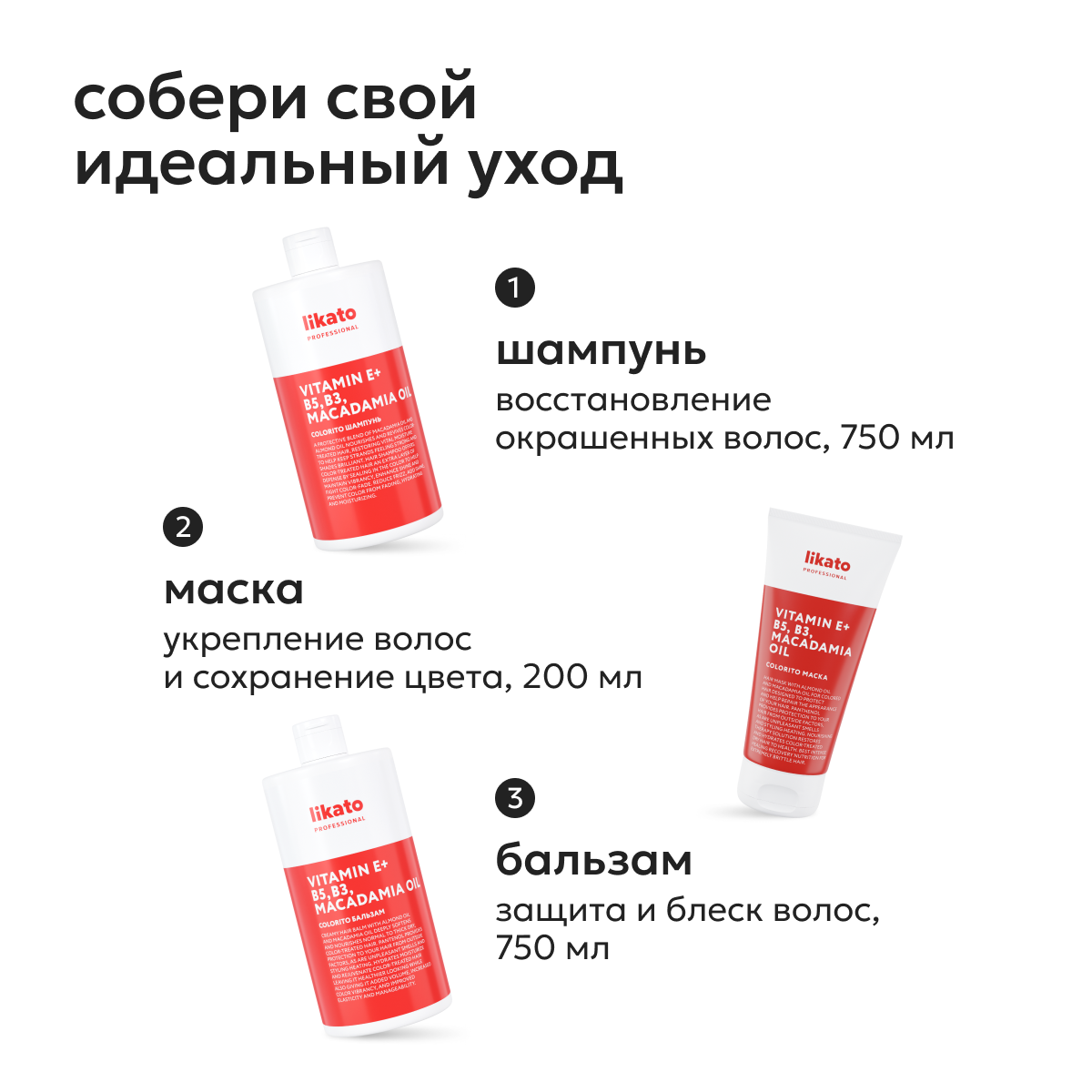 Бальзам-софт Likato Colorito сохраняет цвет окрашенных волос. Придает эластичность и прочность. Масло макадамии в составе — защищает локоны от негативного воздействия внешних факторов. Масло миндаля — уменьшает сухость и ломкость, предотвращает появление секущихся кончиков. Средство придает волосам блеск.