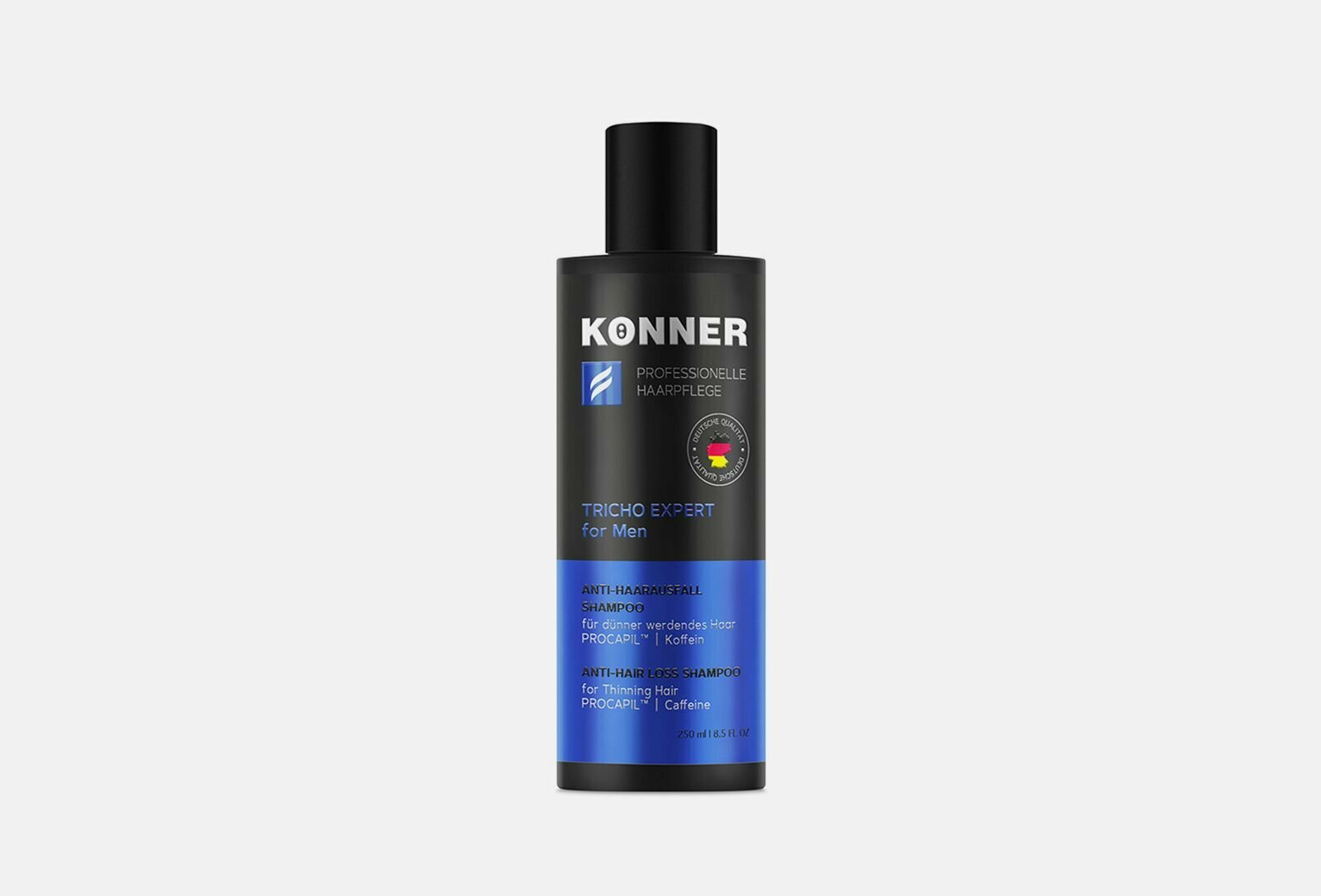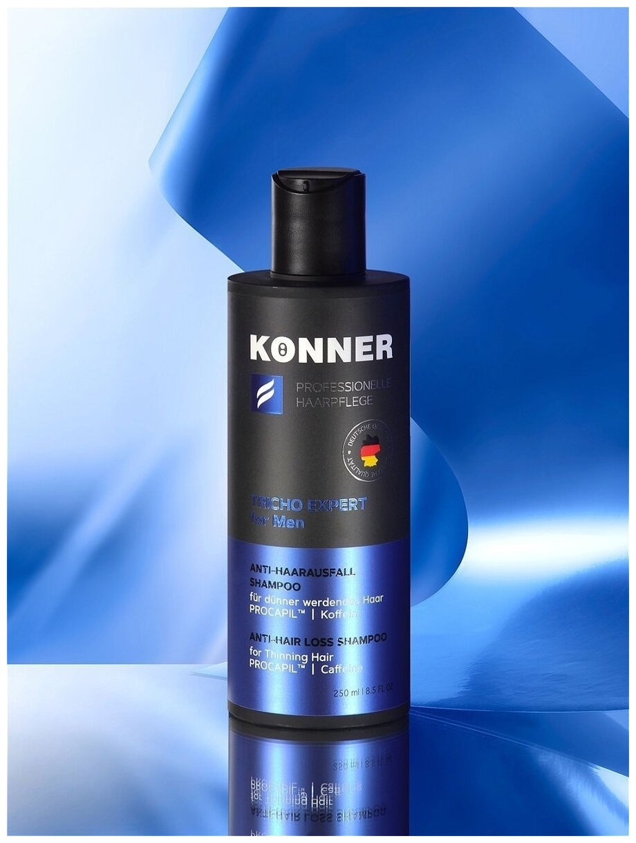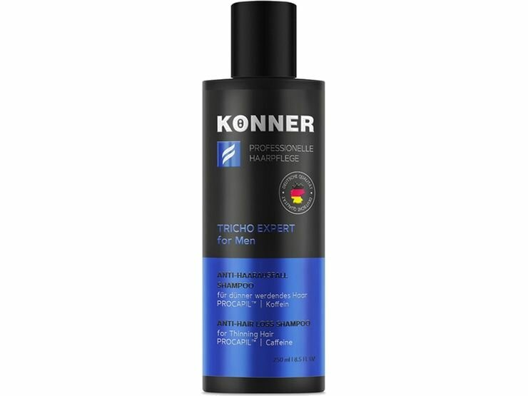Шампунь для мужчин серии TRICHO EXPERT предназначен для эффективного решения проблемы выпадения волос. Средство, разработанное для мужчин с признаками андрогенной алопеции, - это сочетание эксклюзивного немецкого качества и профессиональной усиленной формулы против потери волос с Прокапилом® и кофеином. Шампунь бережно очищает волосы и кожу головы, не вызывая раздражений и сухости, интенсивно укрепляет волосяные фолликулы, тем самым предотвращая их обильное выпадение. Кофеин способствует снижению избыточной выработки активной формы тестостерона, который является основной причиной обильного выпадения волос у мужчин. Благодаря мягкой моющей основе шампунь подходит для ежедневного использования. Шампунь создает плотную густую пену для эффективного очищения, легко и комфортно смывается. Изготовлено по заказу и под контролем немецкой лаборатории Schonheitspflegeforschung und Entwicklungszentrum GmbH. Способ применения: внимательно изучите инструкцию на упаковке перед применением.