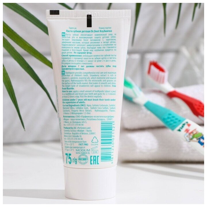 Зубная паста Dr.Dent детская Клубничка 75г Модум