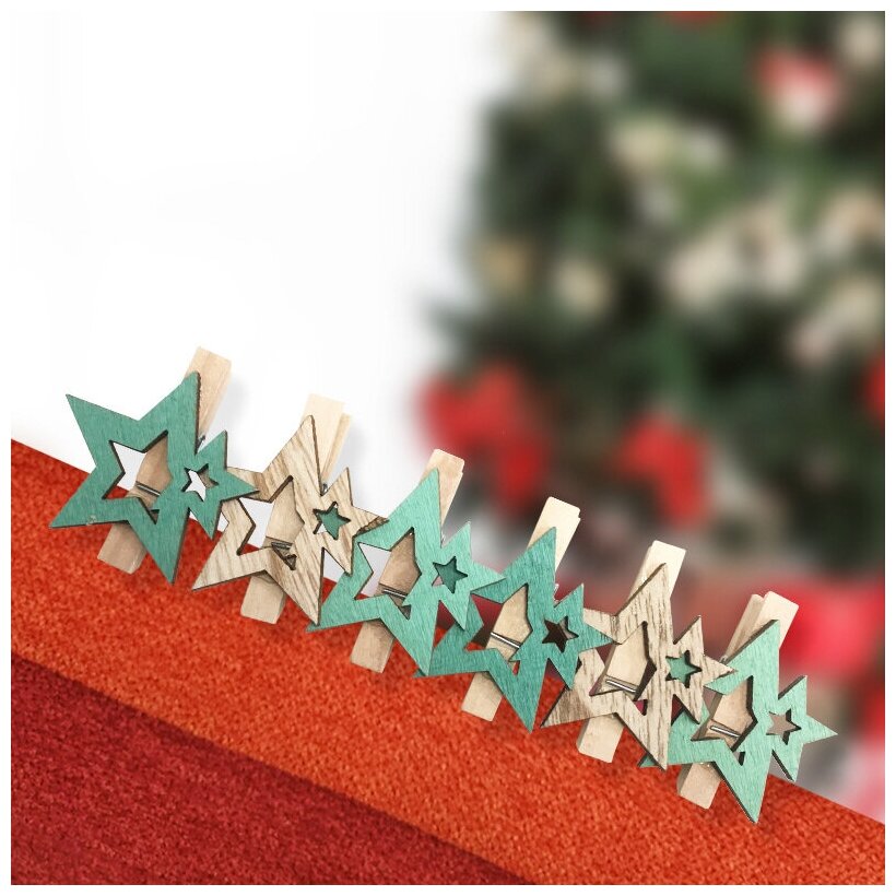 Набор новогодних украшений Neon-Night прищепки деревянные Звездочки бирюзовые 16*4.5*1.3cм 6шт Neon-Night Co