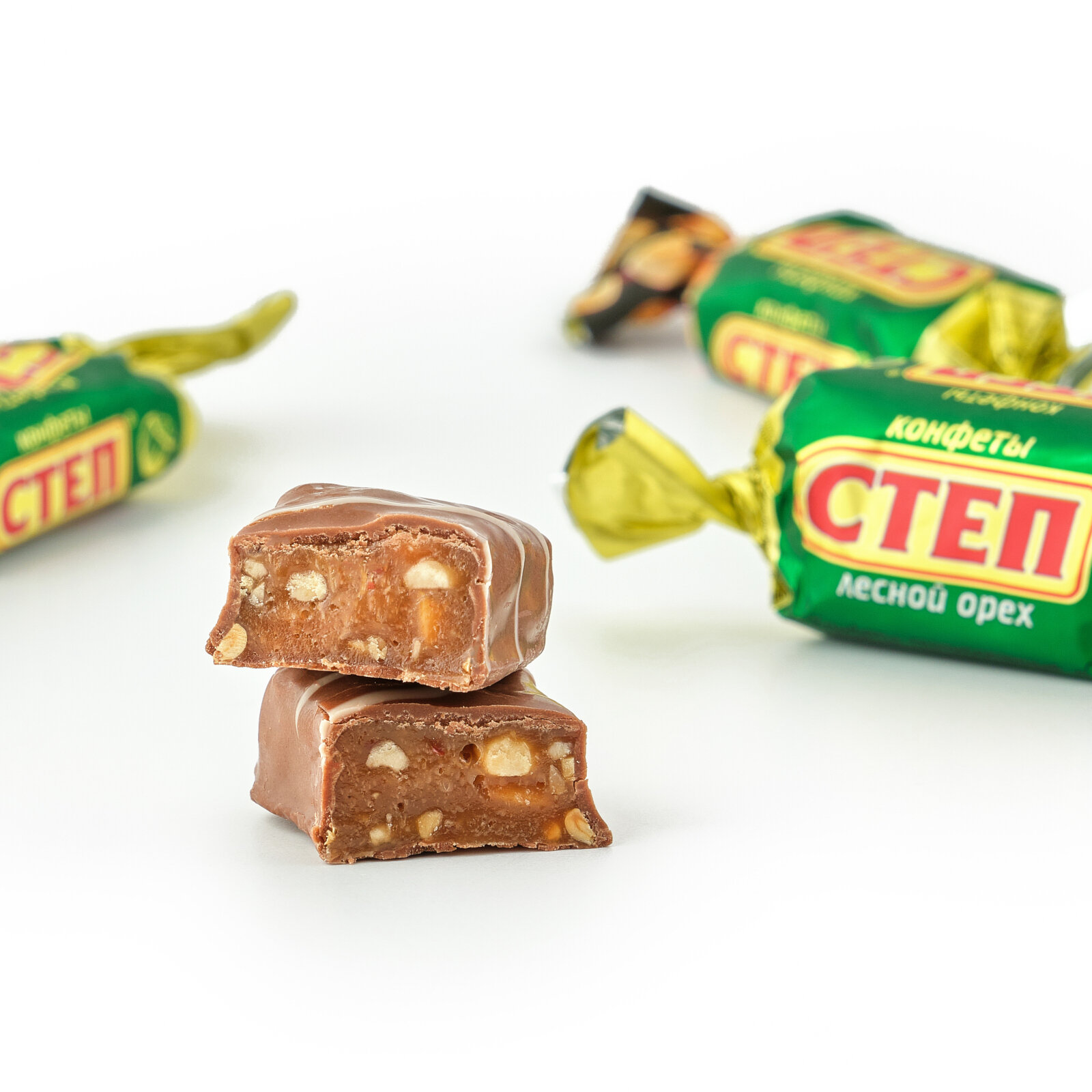 Конфеты глазированные "Степ лесной орех" с арахисом и фундуком. Продукт не содержит ГМО.