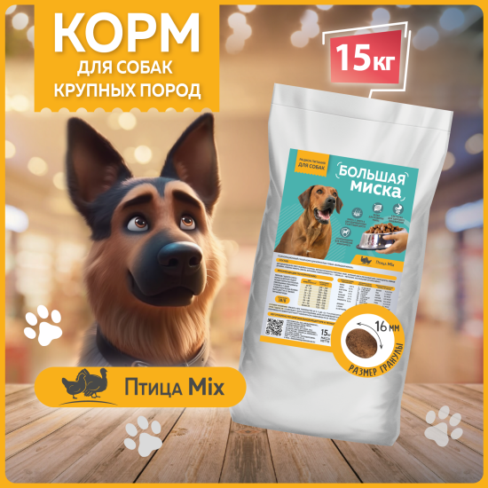 Сухой корм для собак Большая Миска Mix Полнорационный Птица 15кг Зоогурман
