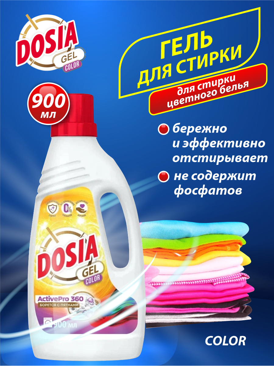 Гель для стирки DOSIA COLOR эффективно и бережно отстирывает различные загрязнения на одежде и белье.