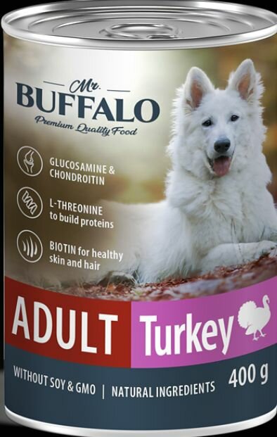 Влажный корм для собак Mr.Buffalo Adult Индейка 400г (упаковка 9 шт.) Экопром