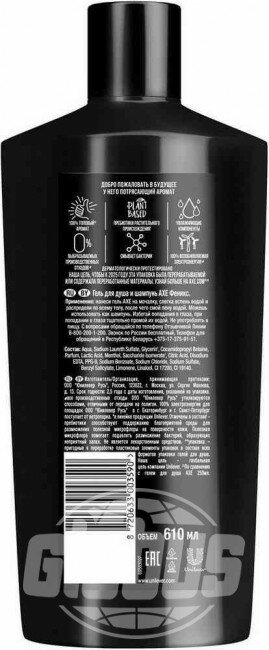 | Способ применения | Нанеси гель AXE на мочалку, слегка вспень водой и распредели по всему телу, после чего смой пену водой. 2 в 1 - можешь использовать этот гель как шампунь. Избегай попадания в глаза, при попадании в глаза тщательно промой их водой. |
