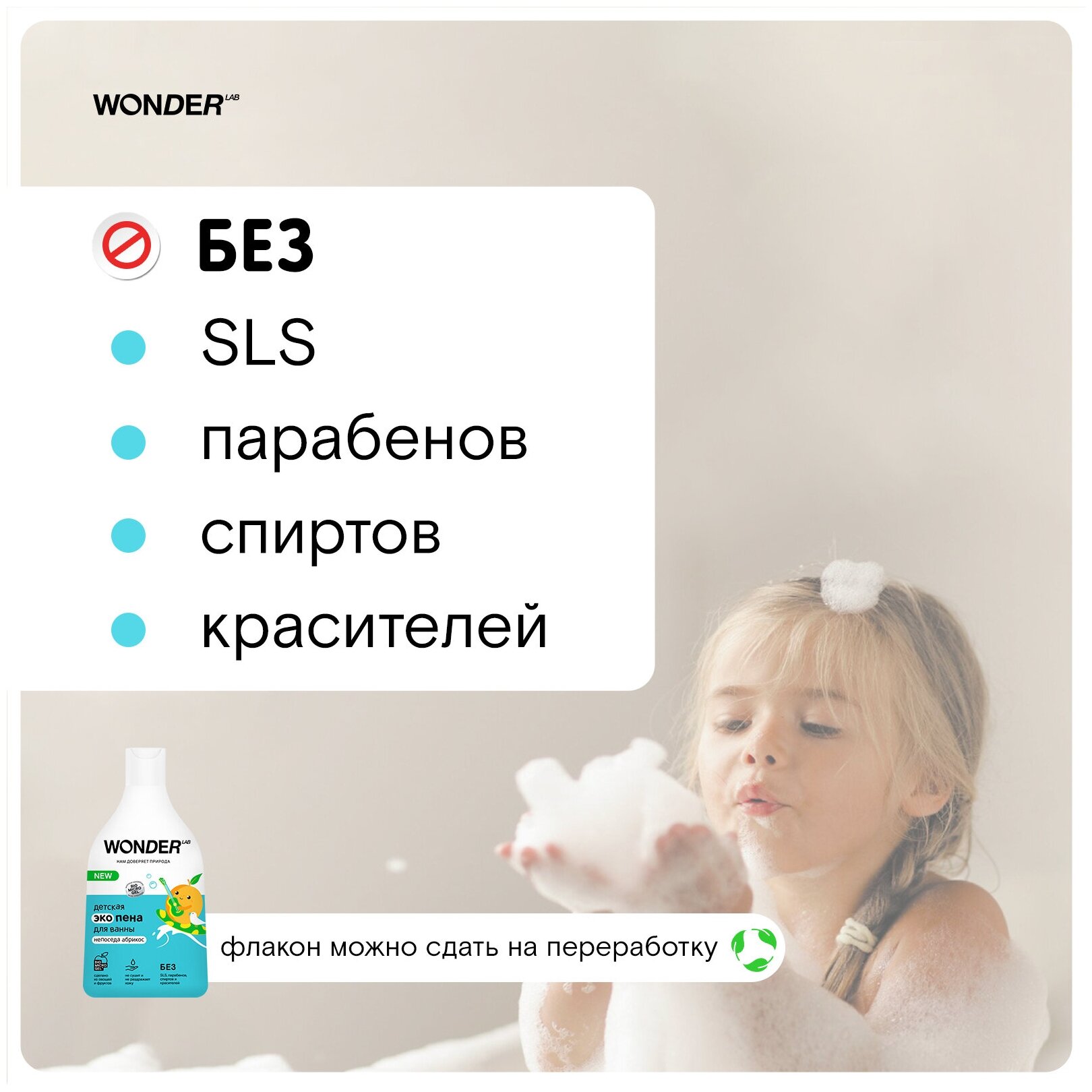 Сервис сравнения цен СкидкаГИД предлагает сравнить цены на товар «Пена для ванны детская Wonder Lab с ароматом абрикоса для купания малышей 3+ 540мл БМГ»