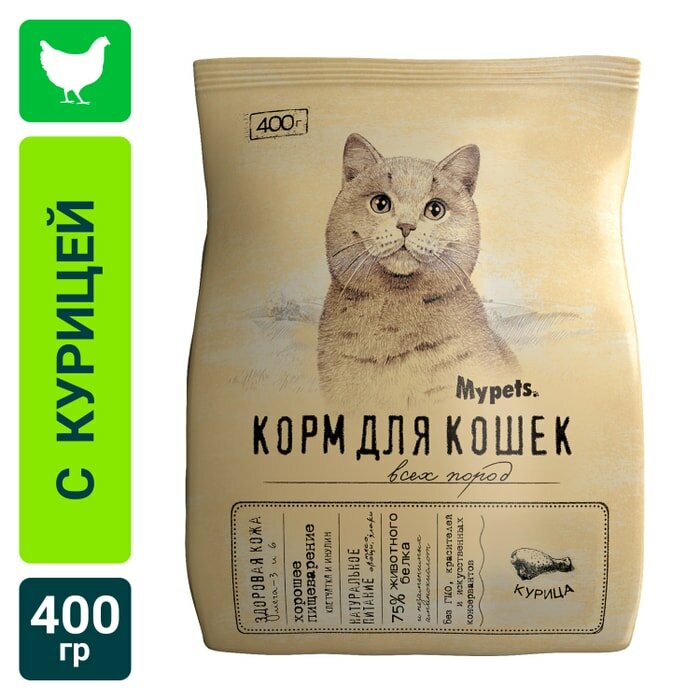 Сухой корм для кошек MyPets с курицей полноценный 400г Фава