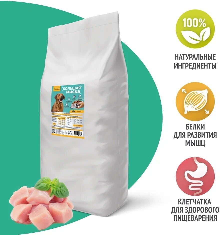 Питание собаки является важной составляющей ее существования в домашних условиях. Сухой корм серии «Большая миска» разработан для собак с нормальной активностью. Корм обеспечит собаке сбалансированное и полноценное питание для поддержания ежедневной жизнедеятельности организма животного. Состав восполнит требуемый уровень жиров, минералов, белков, макроэлементов. Антиоксиданты – для укрепления иммунитета. Омега-3, Омега-6 – для здоровой кожи и блестящей шерсти. Белки – для развития мышечной системы. Клетчатка – для здорового пищеварения. L-лизин – поддержка здоровья, и снижение риска различных проблем. Для собак всех пород. Корм серии БОЛЬШАЯ МИСКА специально разработан с учётом баланса качества и цены