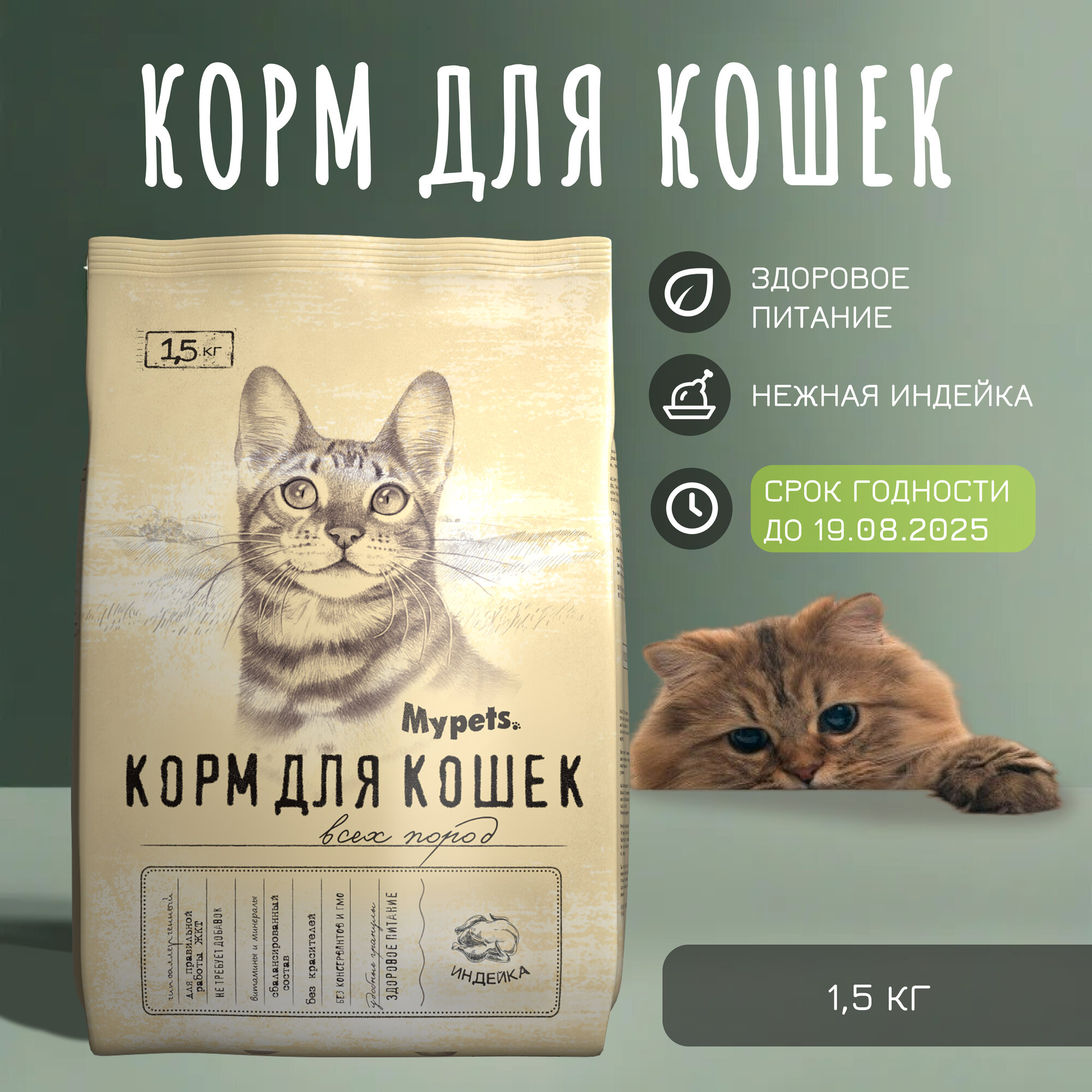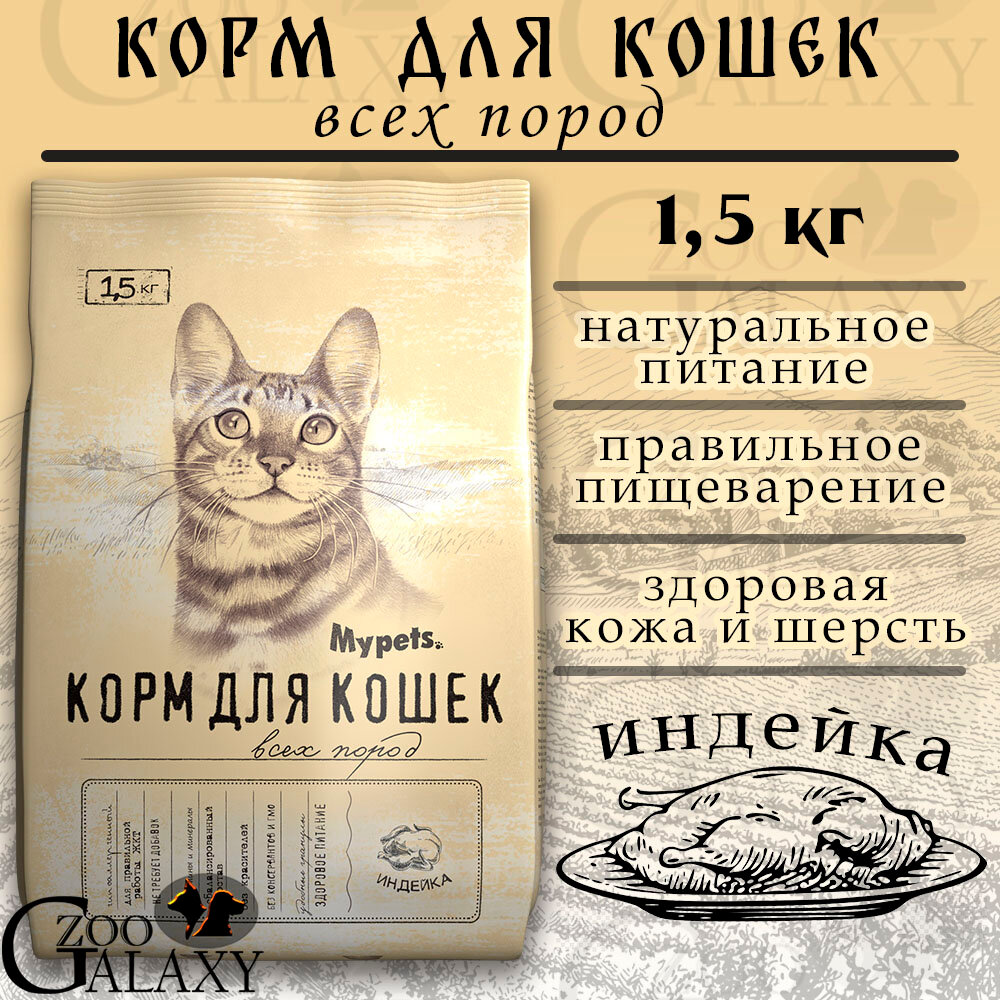 Сухой корм для кошек MyPets с индейкой 1.5кг Фава