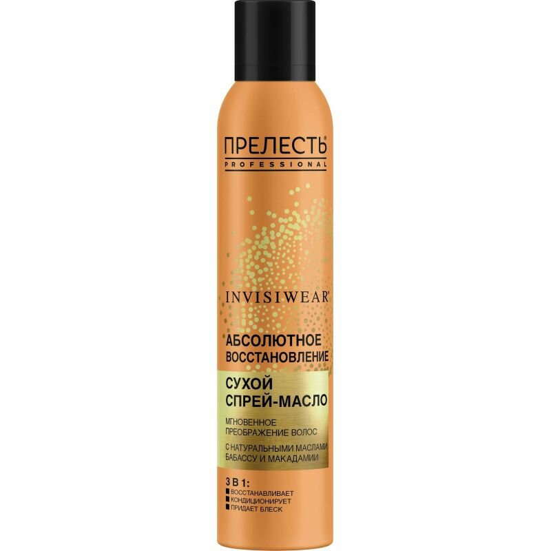 Сервис сравнения цен СкидкаГИД предлагает сравнить цены на товар «Масло сухое для волос Прелесть Professional Invisiwear Невесомое для блеска и питания волос 200мл Аэрозоль Новомосковск»