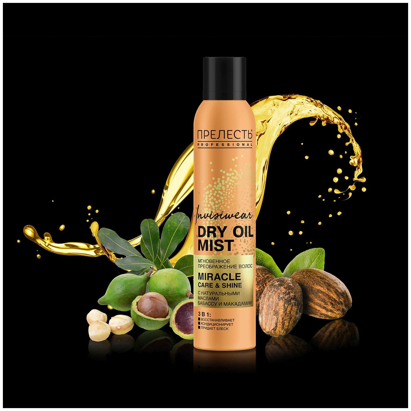 Уникальное масло для волос Прелесть Professional в аэрозольном формате — экспресс-помощь для сухих, сильно поврежденных волос.