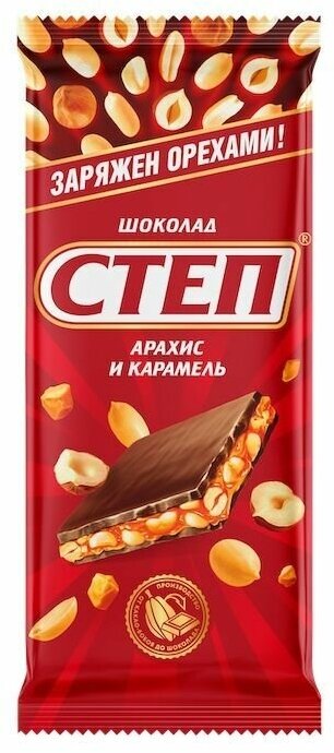 Шоколад Степ Молочный Изюм-Арахис-Карамель 90г Славянка