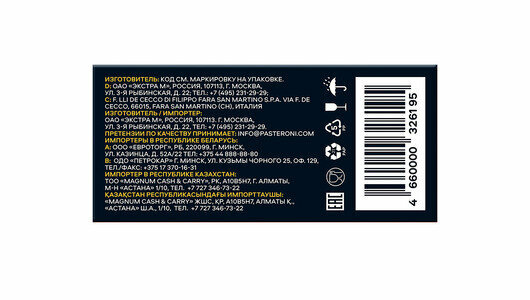 | Способ приготовления | Варить 10 минут, до состояния аль-денте 8 минут. |