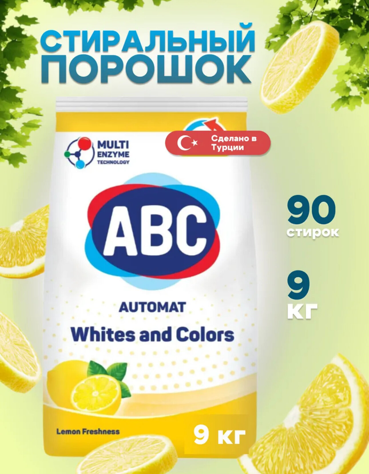 О товаре Стиральный порошок ABC для цветного 9кг - эффективное средство для стирки цветного белья в стиральной машине. Его обновленная формула легко проникает в волокна ткани и справляется даже со стойкими и трудновыводимыми пятнами. Входящие в состав порошка натуральные ферменты и компоненты убивают 99,9% микробов, а также все виды бытовых клещей и продукты их жизнедеятельности. Благодаря системе контроля пенообразования средство полностью выполаскивается и не остается в волокнах ткани. Устраняет неприятные запахи белья и придает ему свежий аромат чистоты. Отлично работает даже в холодной воде и на быстром режиме стирки. Рекомендуется для стирки хлопка, льна, полиэстера, вискозы, нейлона и акрилового волокна.