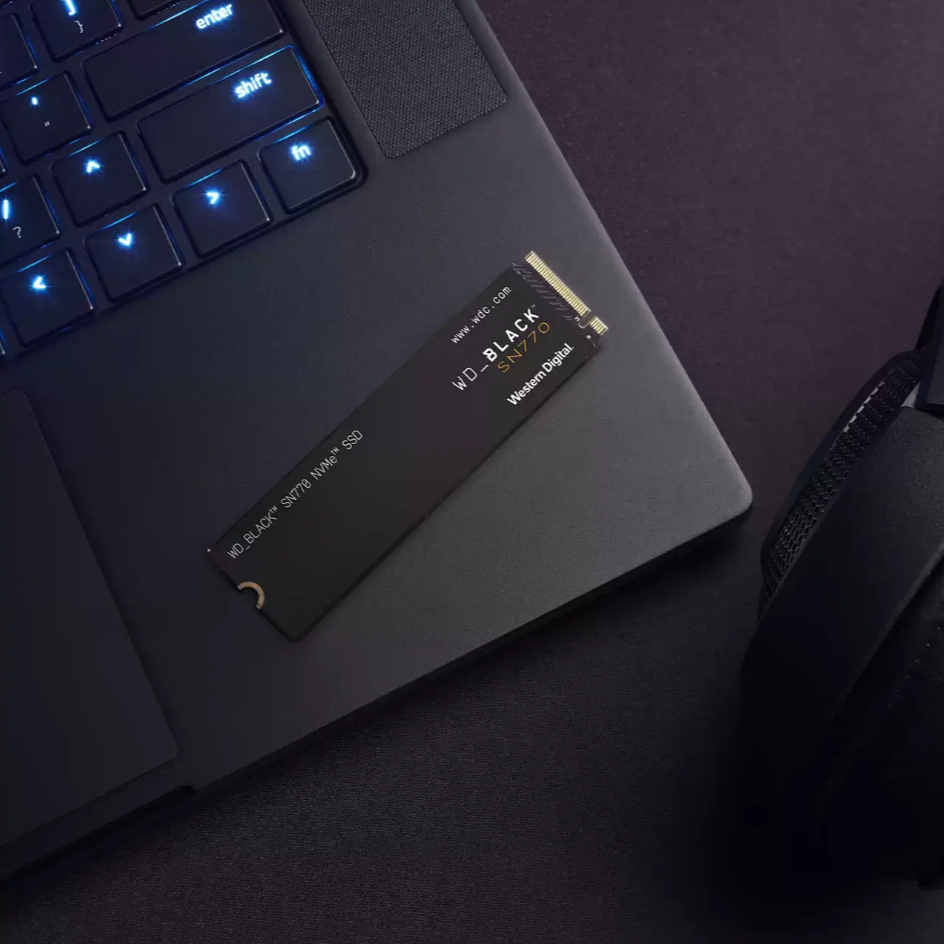 На твердотельном накопителе WD_BLACK SN770 NVMe SSD емкостью 1 ТБ — огромное пространство для хранения новых игр, а также для обновлений и загружаемых материалов.
