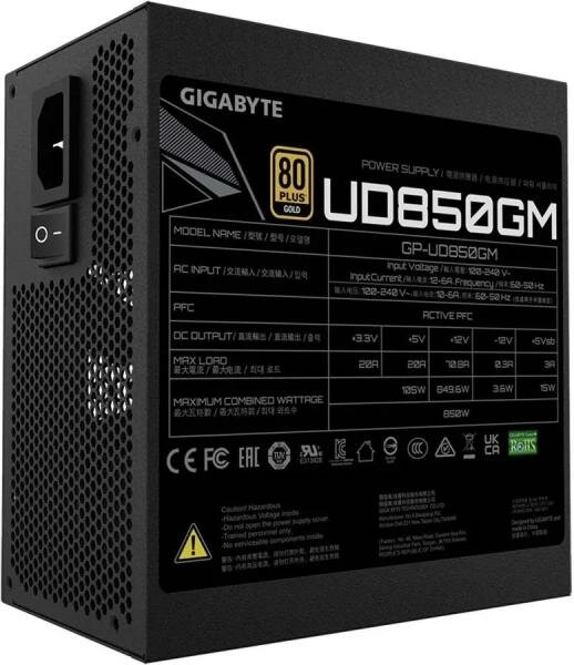 Блок питания ATX GIGABYTE 850W APFC 80PUS Gold 120mm fan full modular UD850GM PG5